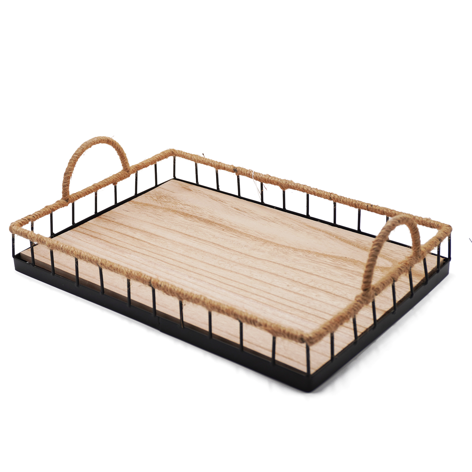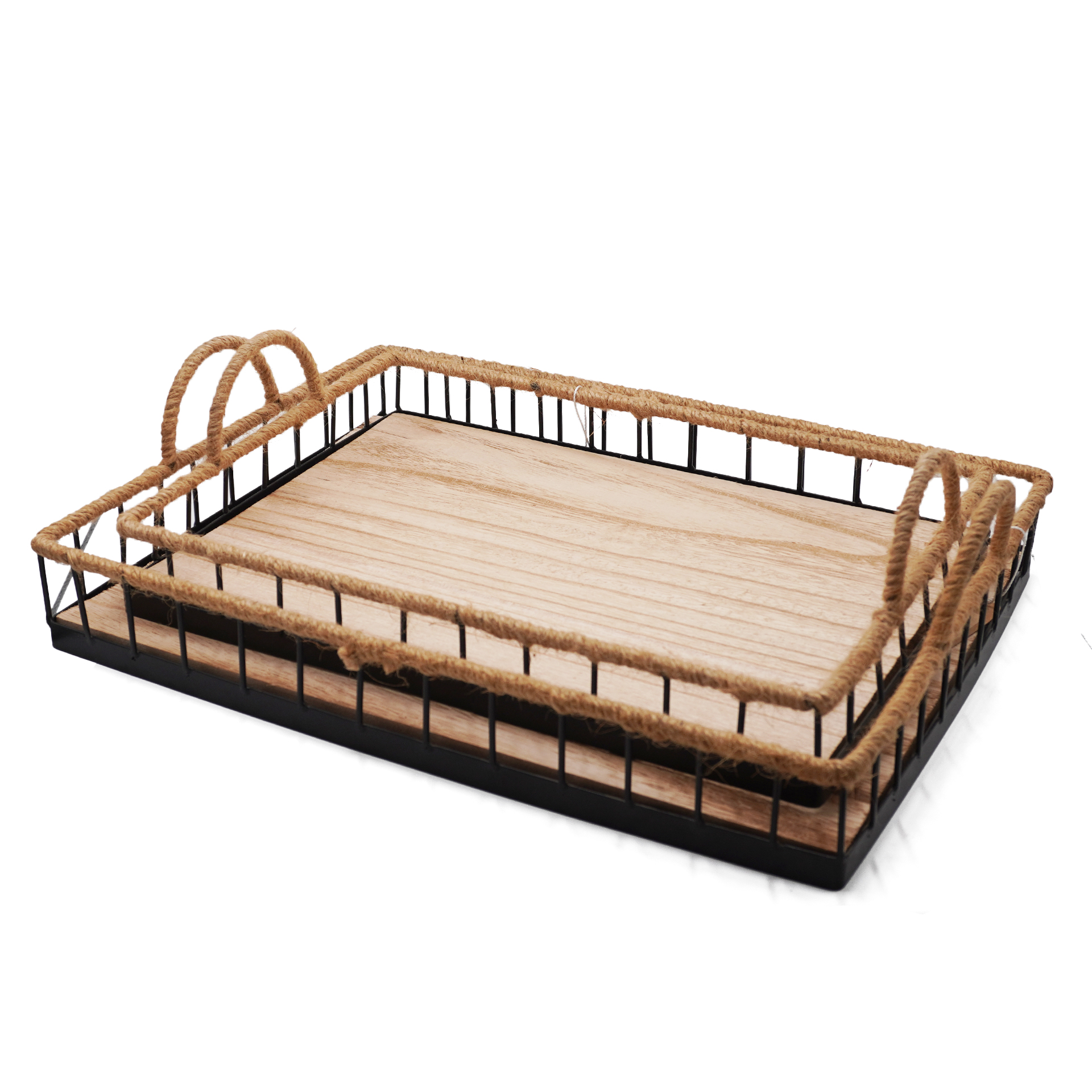 CANASTO DE METAL CON MANIJA DE MADERA