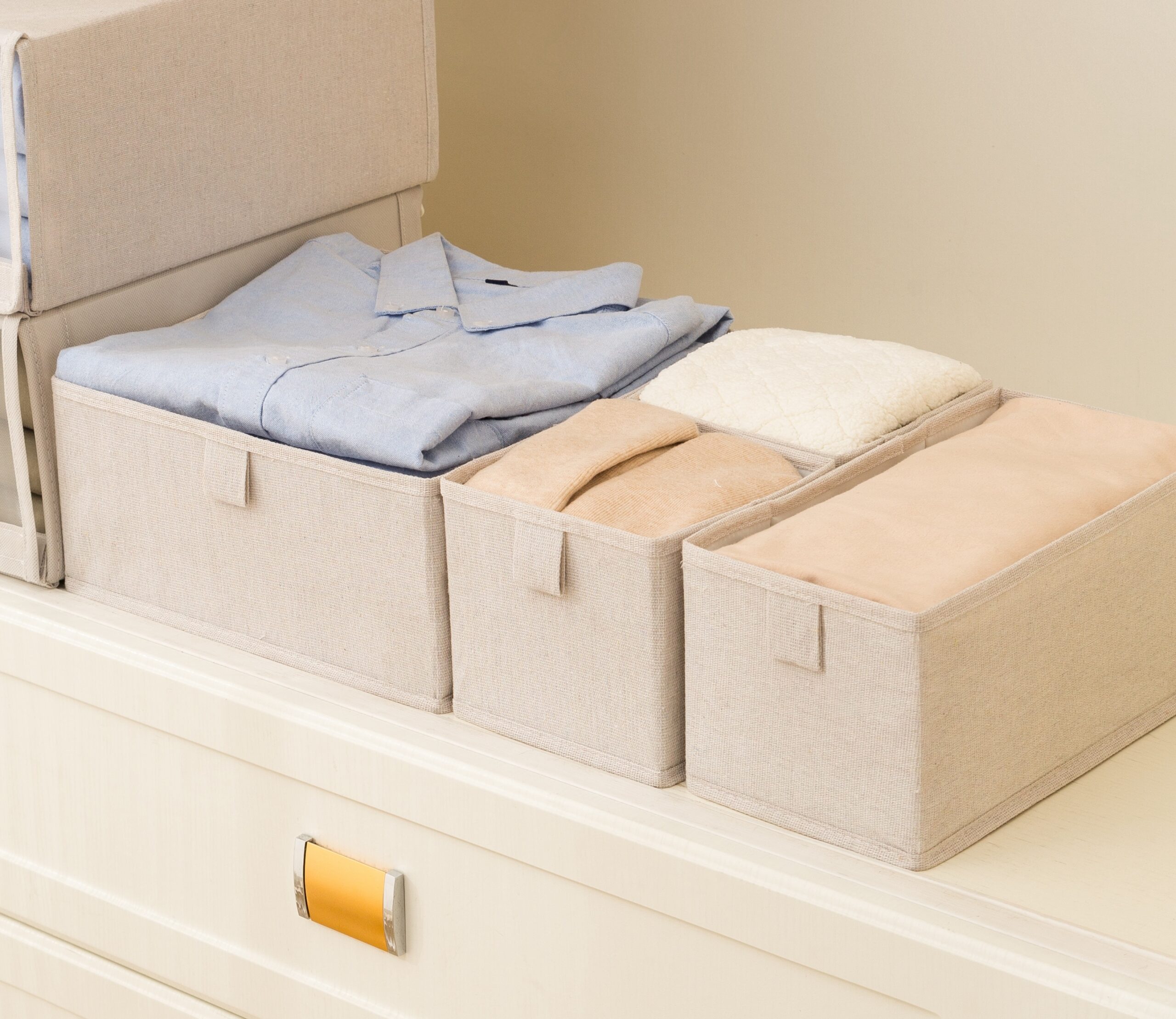 CAJA PLEGABLE FORRADA EN LINO MANIJA DE MADERA (L)