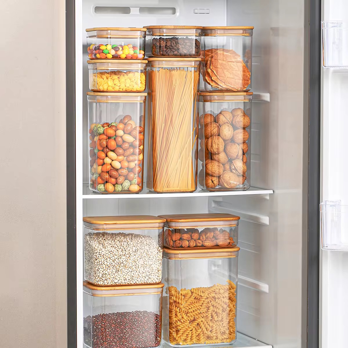 CAJA DE PLÁSTICO CON TAPA BAMBU RECTANGULAR (L)