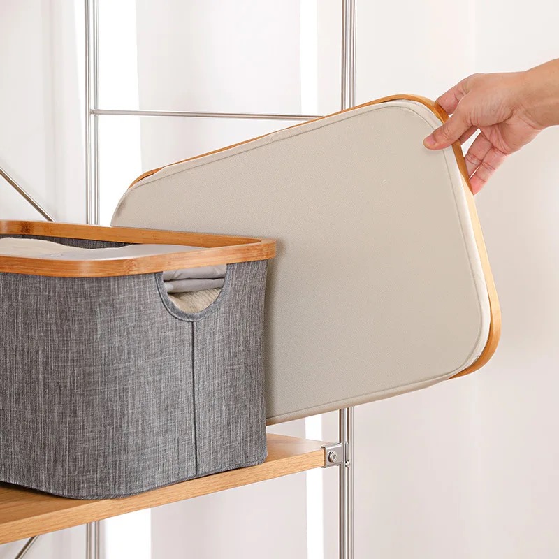 CANASTO DE METAL RECTANG. 2 PISOS CON MANIJA DE MADERA