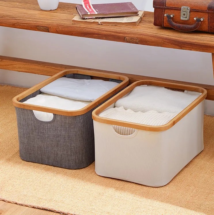 CANASTO DE METAL CON MARCO DE MADERA (SET X 2)