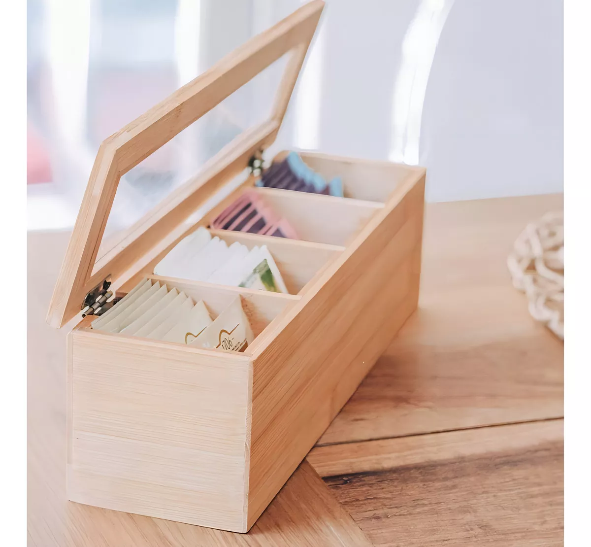 CAJA DE MADERA CON TAPA DE RATÁN CUADRADA (4 ESPACIOS)