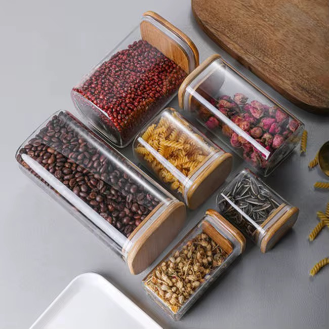 CAJA DE PLÁSTICO CON TAPA BAMBU RECTANGULAR (M)