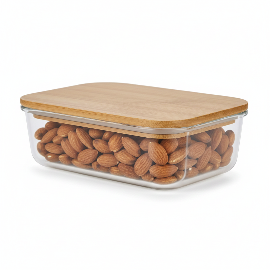 CAJA DE PLÁSTICO CON TAPA BAMBU RECTANGULAR (M)