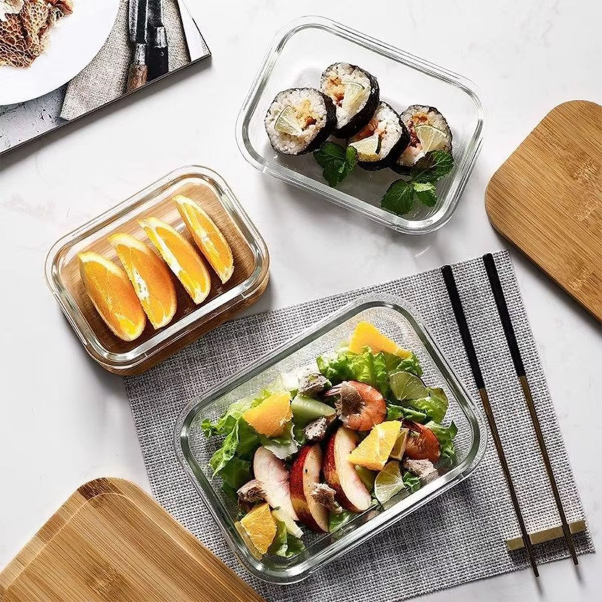 CAJA DE PLÁSTICO CON TAPA BAMBU RECTANGULAR (S)
