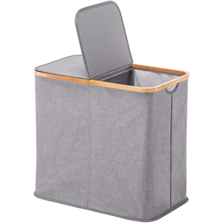 CAJA PLEGABLE FORRADA EN LINO MANIJA DE MADERA (L)