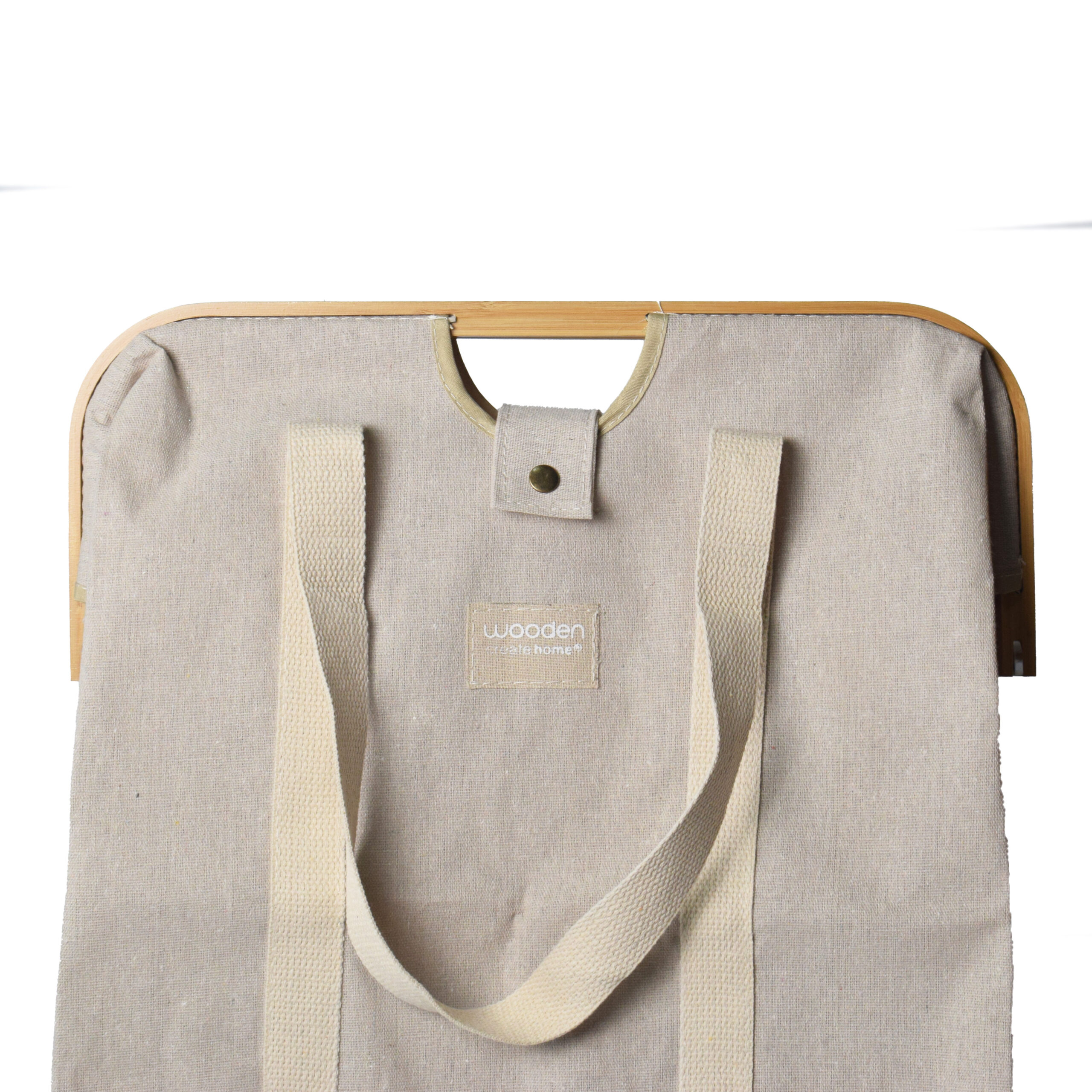 CAJA PLEGABLE FORRADA EN LINO MANIJA DE MADERA (L)
