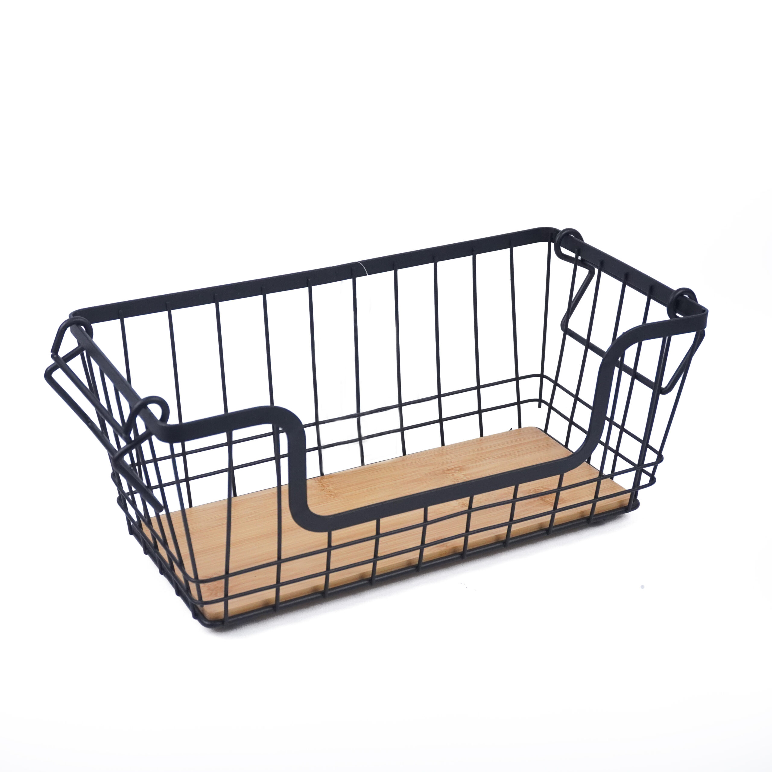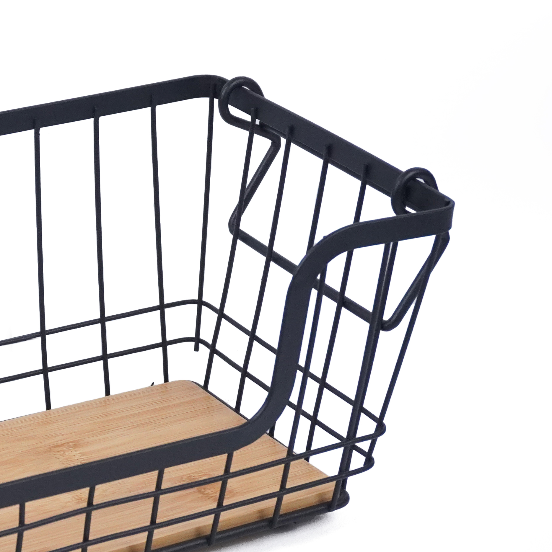 CANASTO DE METAL RECTANG. 2 PISOS CON MANIJA DE MADERA