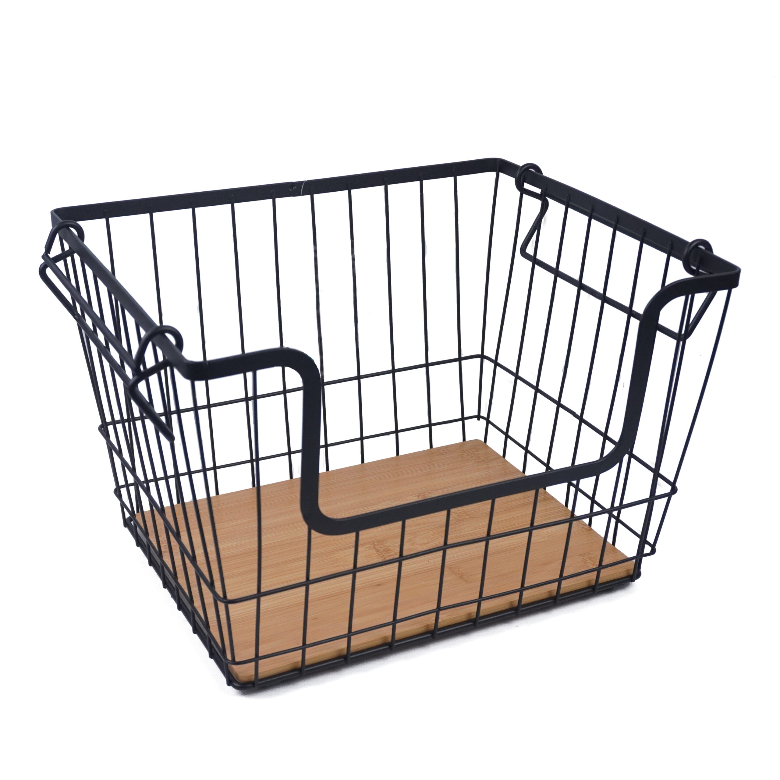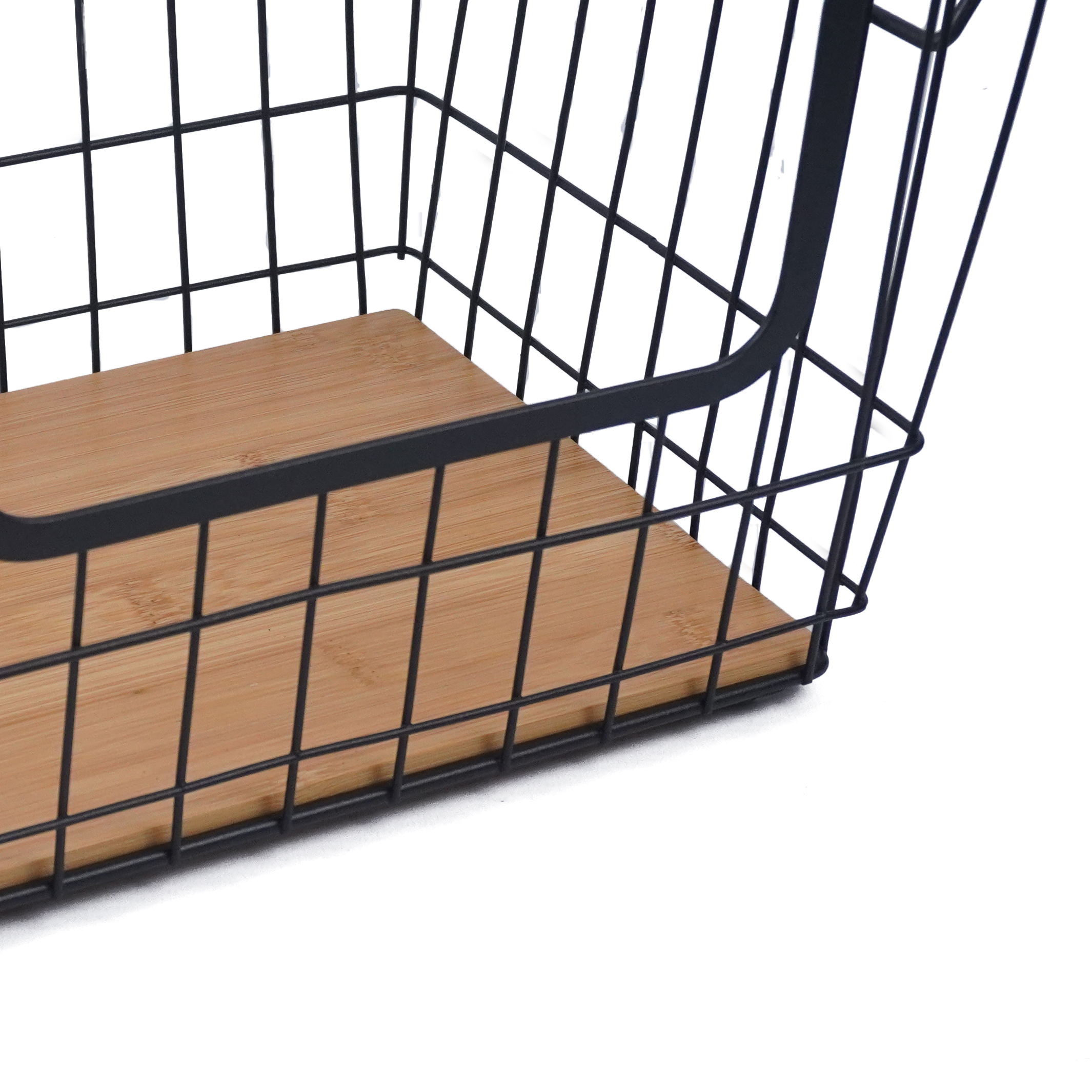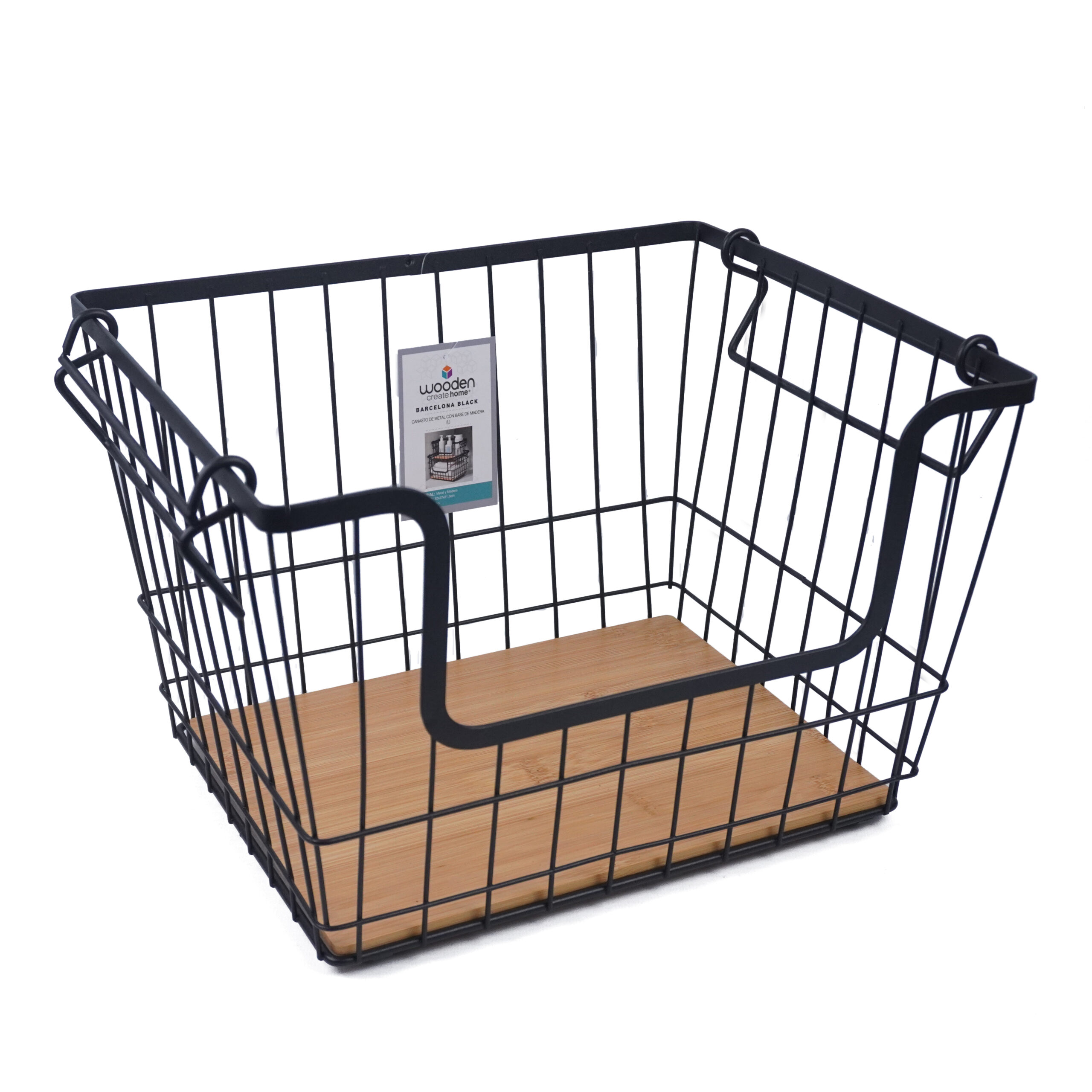 CANASTO DE METAL RECTANG. 2 PISOS CON MANIJA DE MADERA