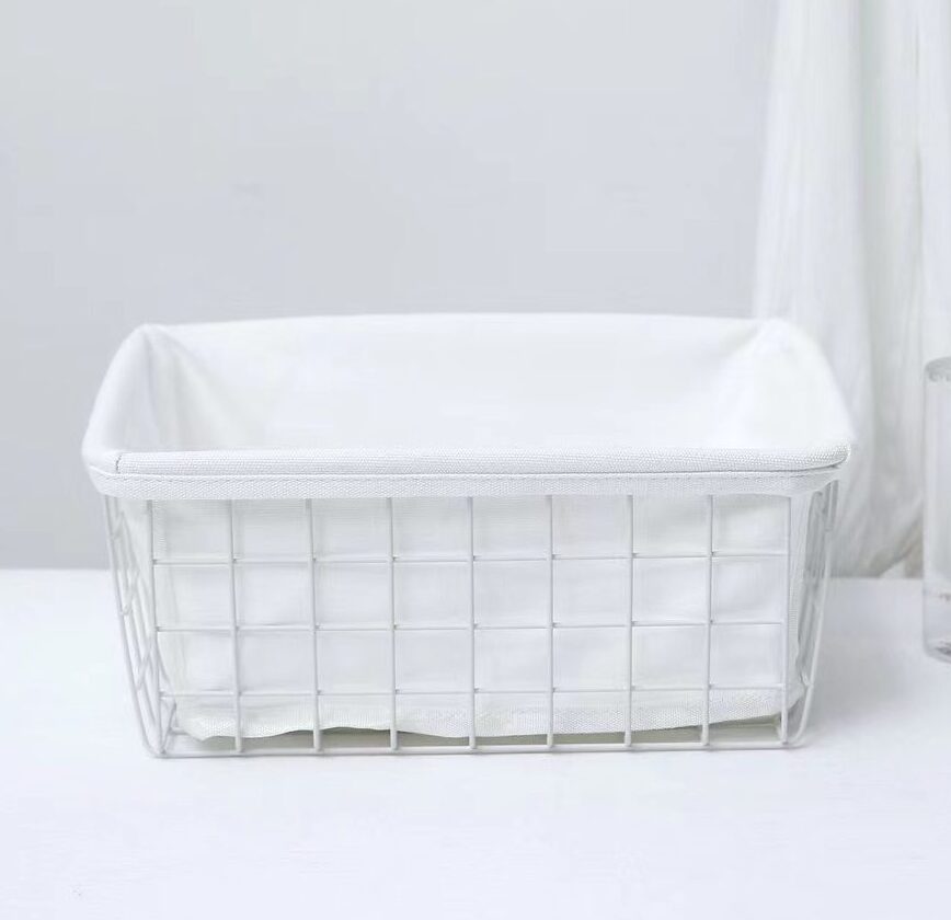 CANASTO DE METAL RECTANG. 2 PISOS CON MANIJA DE MADERA