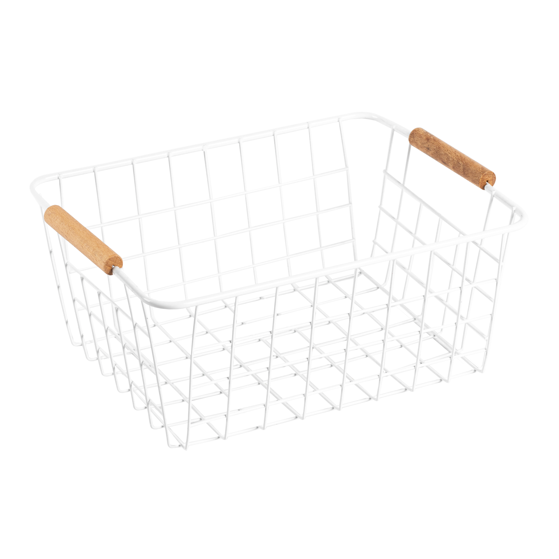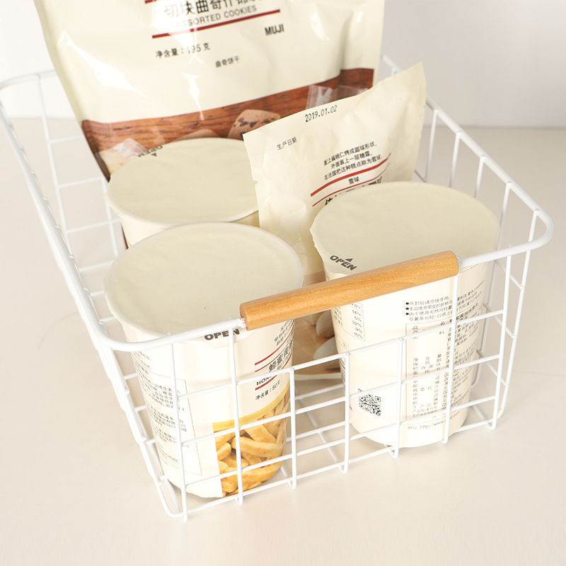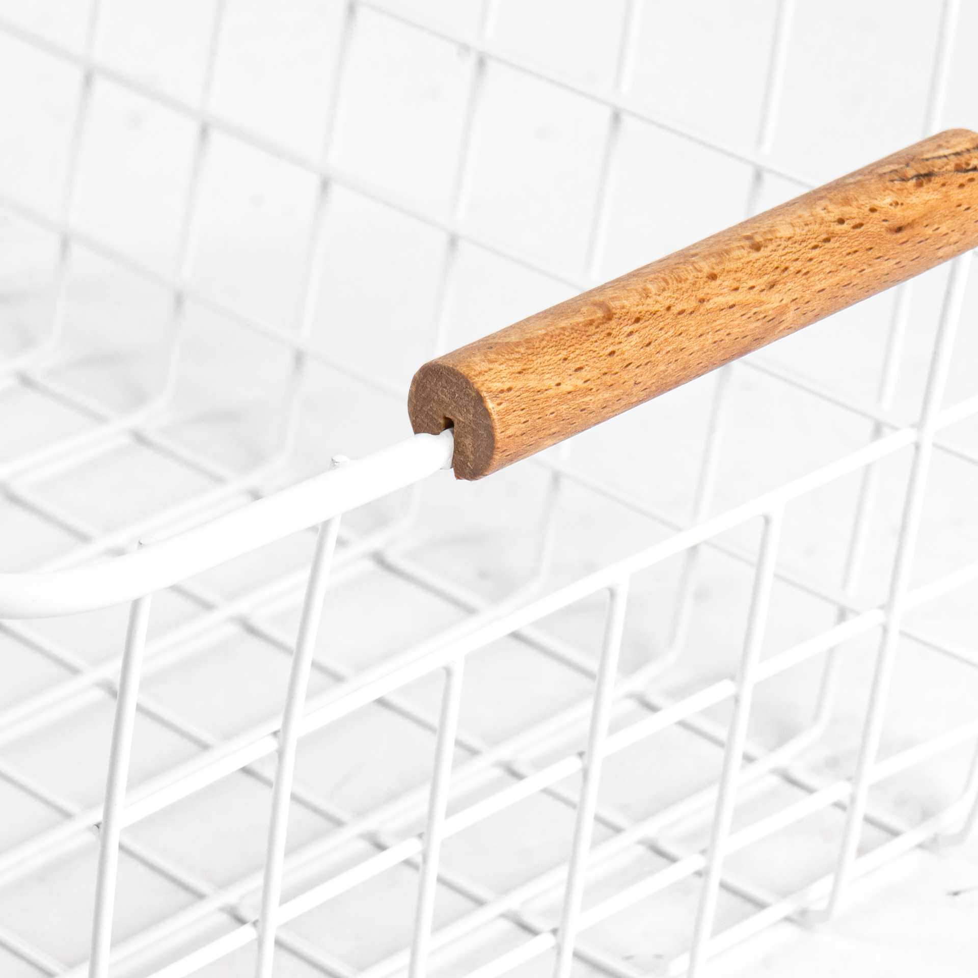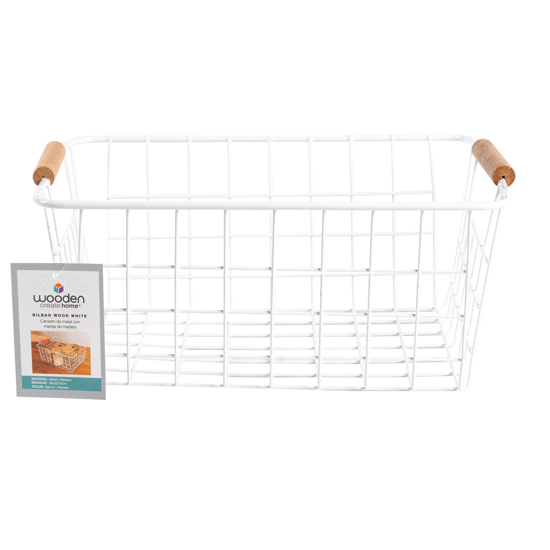 CANASTO DE METAL CON MANIJA DE MADERA