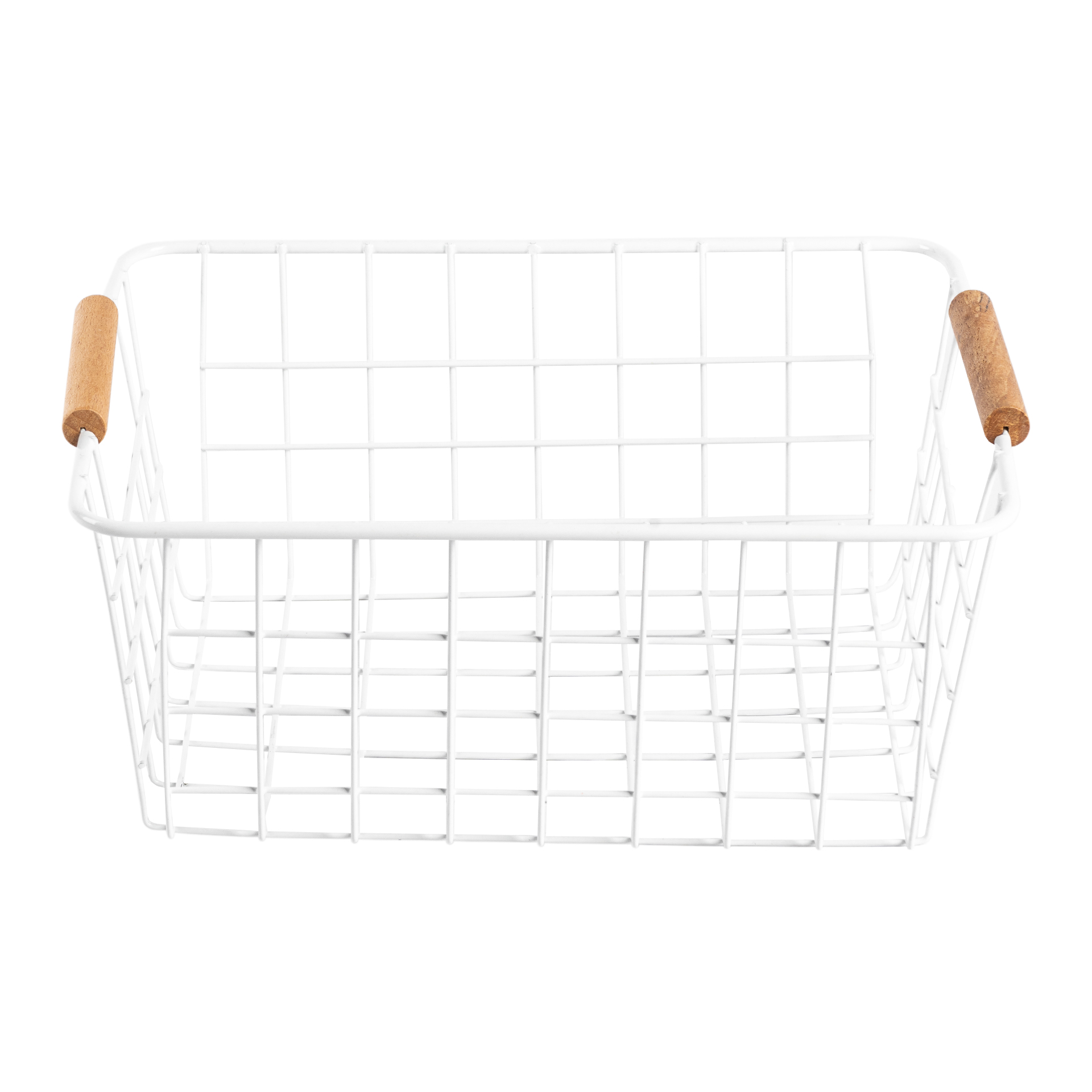 CANASTO DE METAL RECTANG. 2 PISOS CON MANIJA DE MADERA