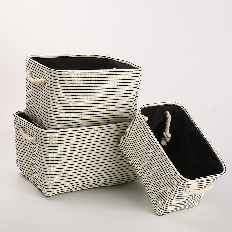 CESTO DE TELA TEJIDO DE ALGODÓN CON MANIJA (L)