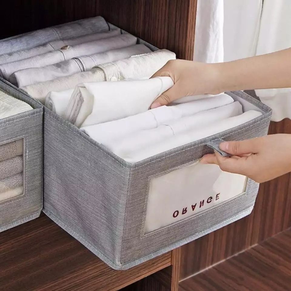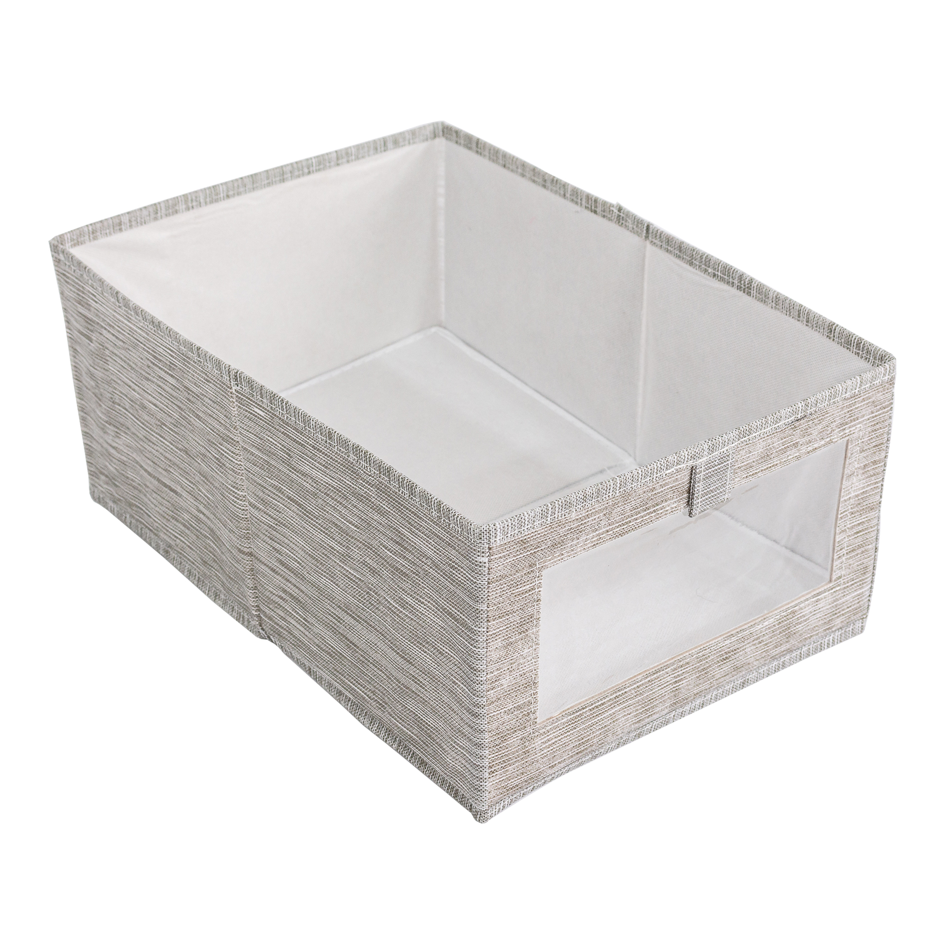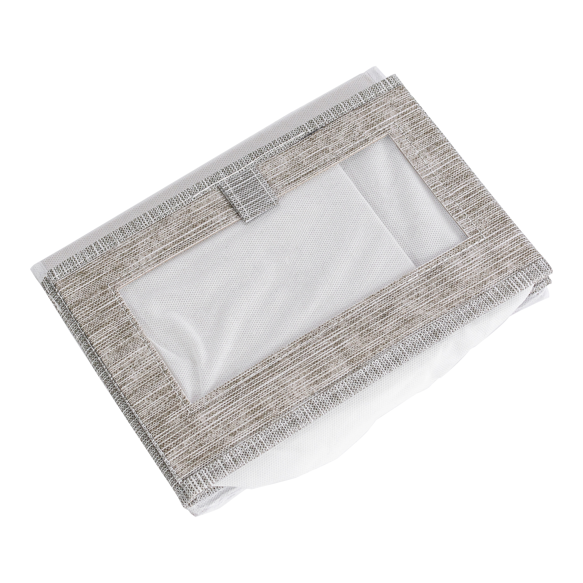 CAJA PLEGABLE FORRADA EN LINO MANIJA DE MADERA (L)