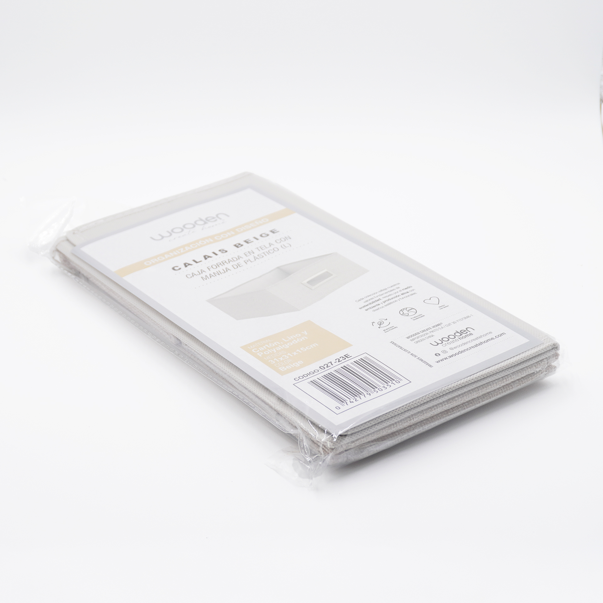 CAJA PLEGABLE FORRADA EN LINO MANIJA DE MADERA (L)