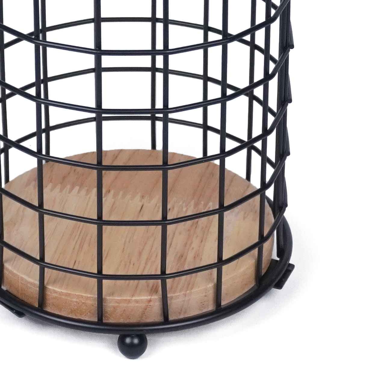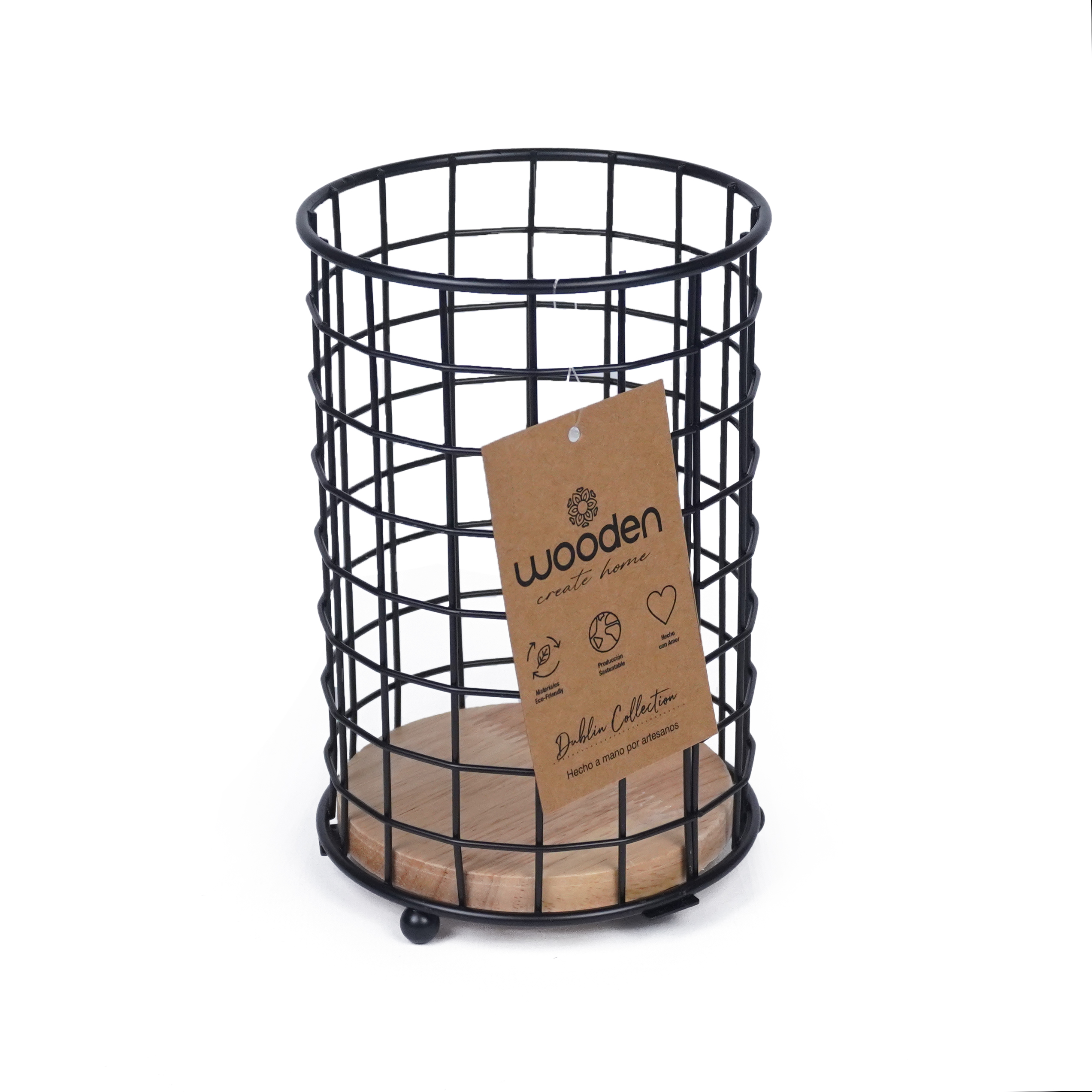 CANASTO DE METAL CON MANIJA DE MADERA