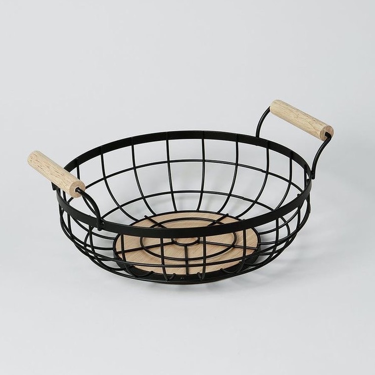 CANASTO DE METAL CON 2 MANIJAS DE MADERA