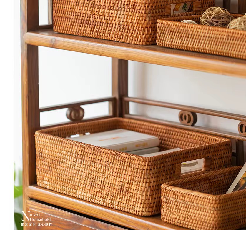 CAJA PLEGABLE FORRADA EN LINO MANIJA DE MADERA (S)