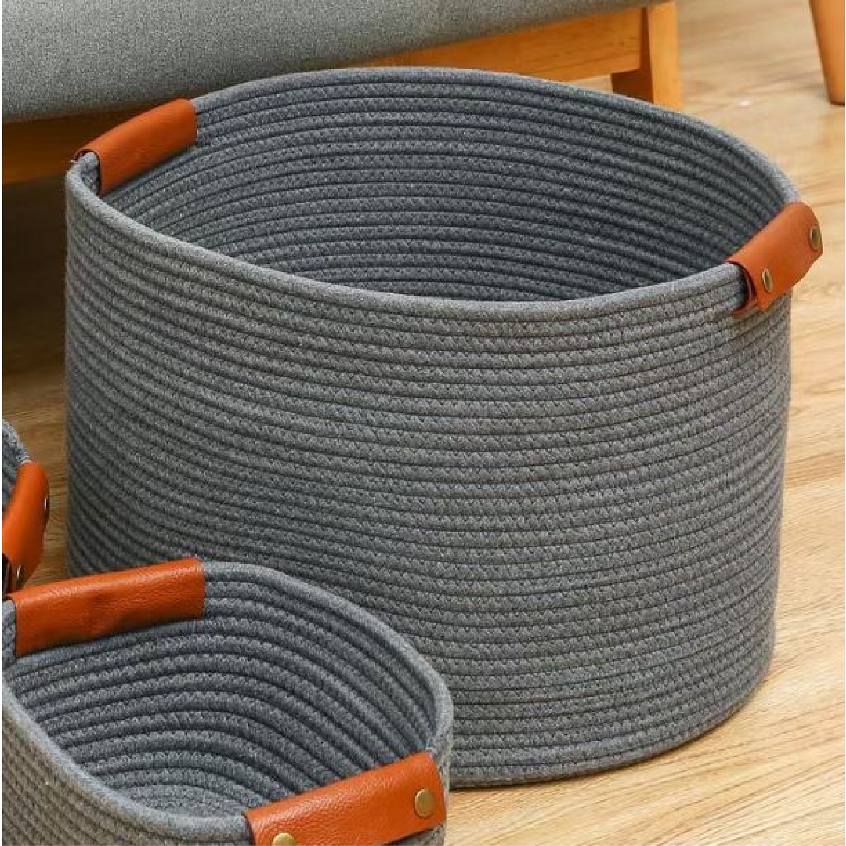 CESTO DE TELA TEJIDO DE ALGODÓN CON MANIJA (S)