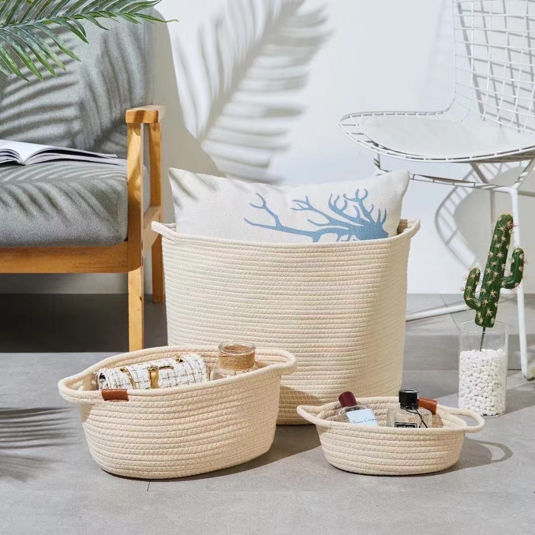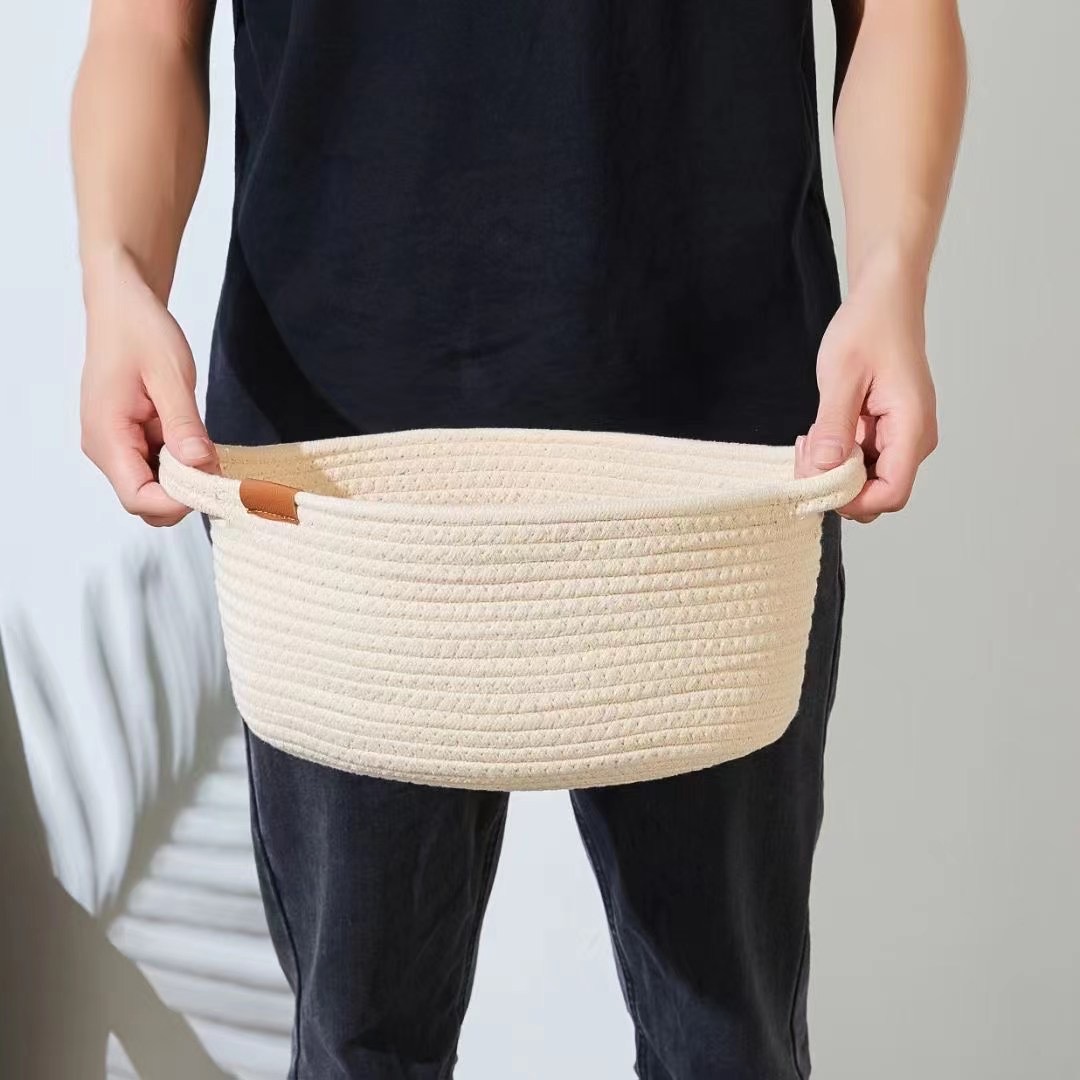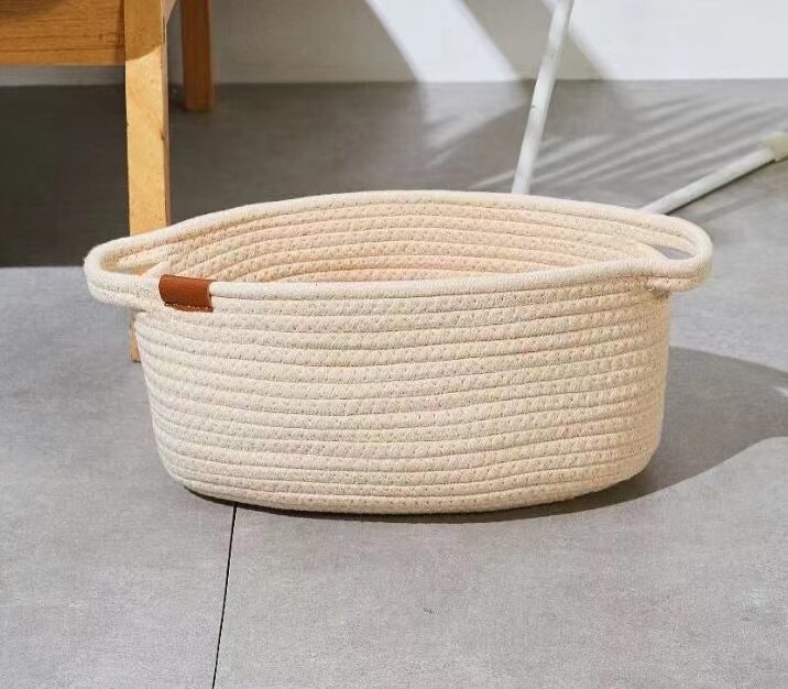 CESTO DE TELA TEJIDO DE ALGODÓN CON MANIJA (L)