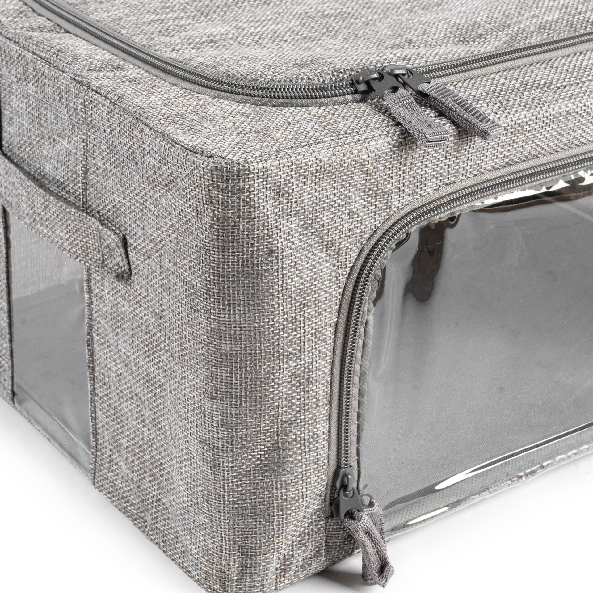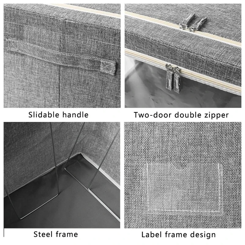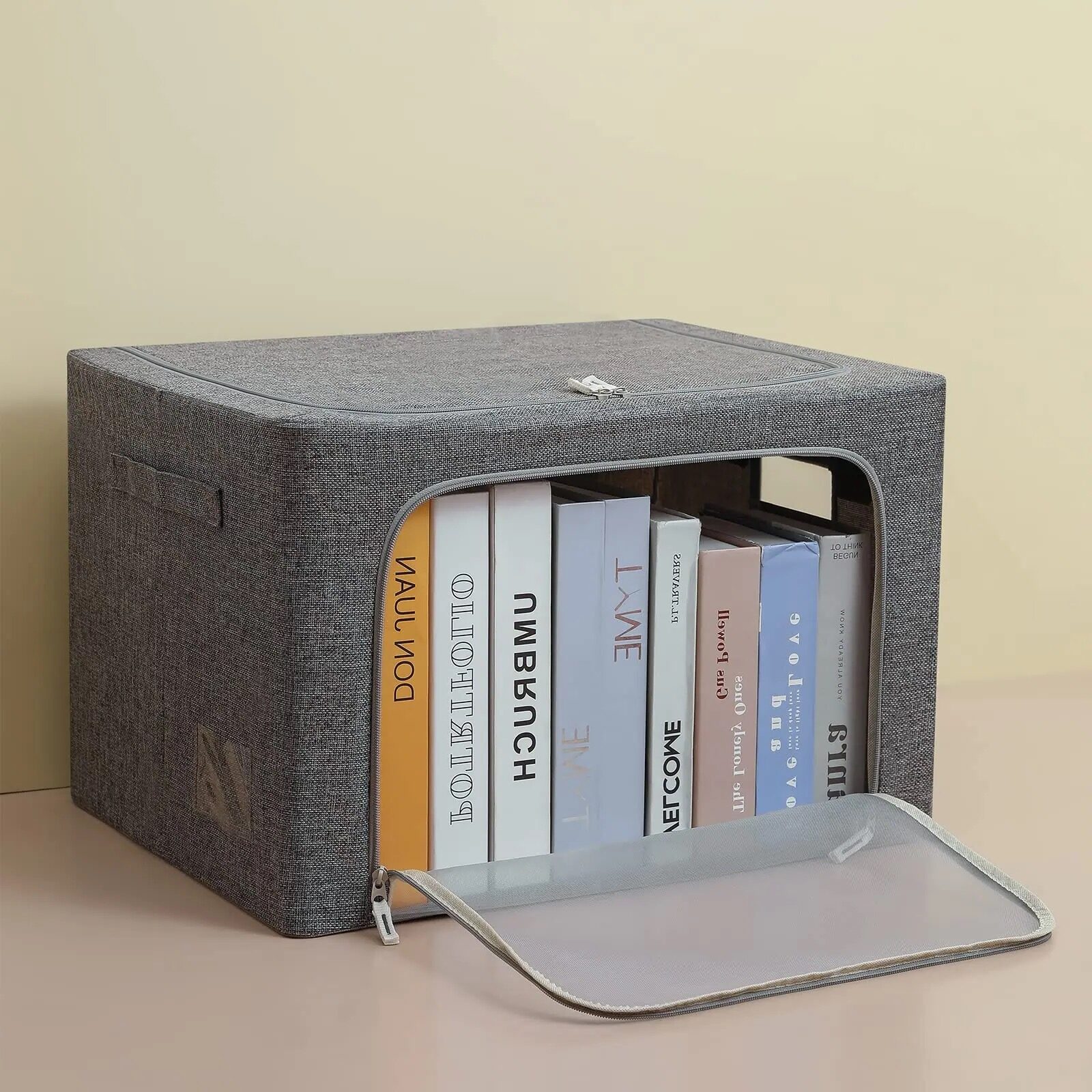 CAJA PLEGABLE FORRADA EN LINO MANIJA DE MADERA (L)