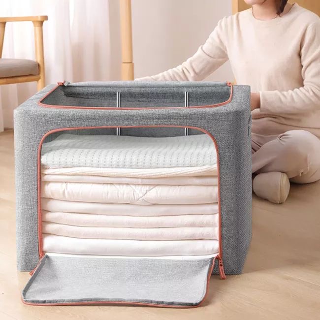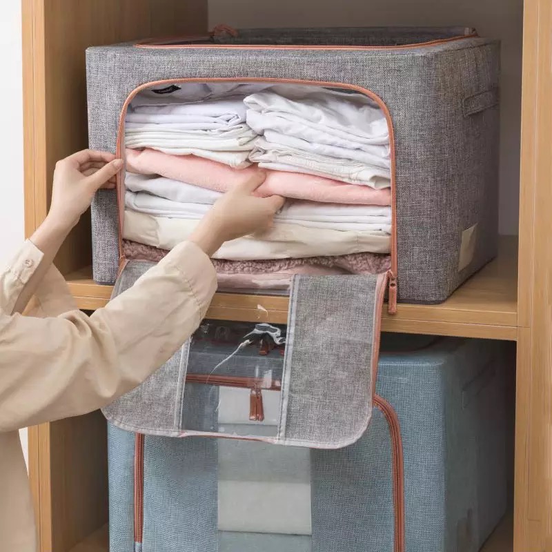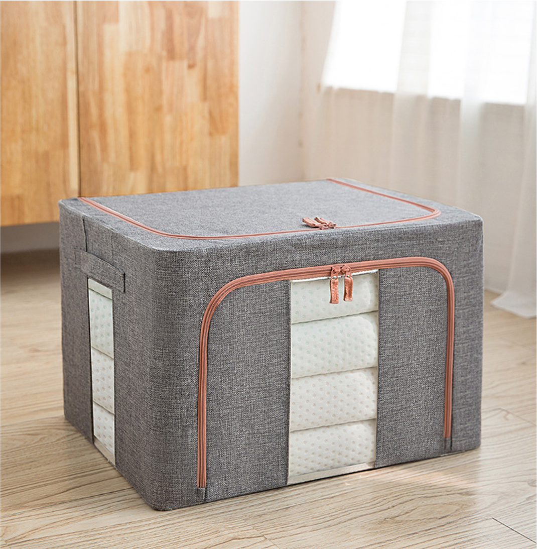 CAJA PLEGABLE FORRADA EN LINO MANIJA DE MADERA (S)