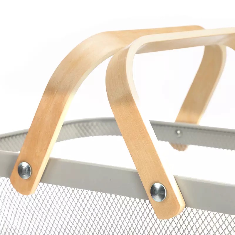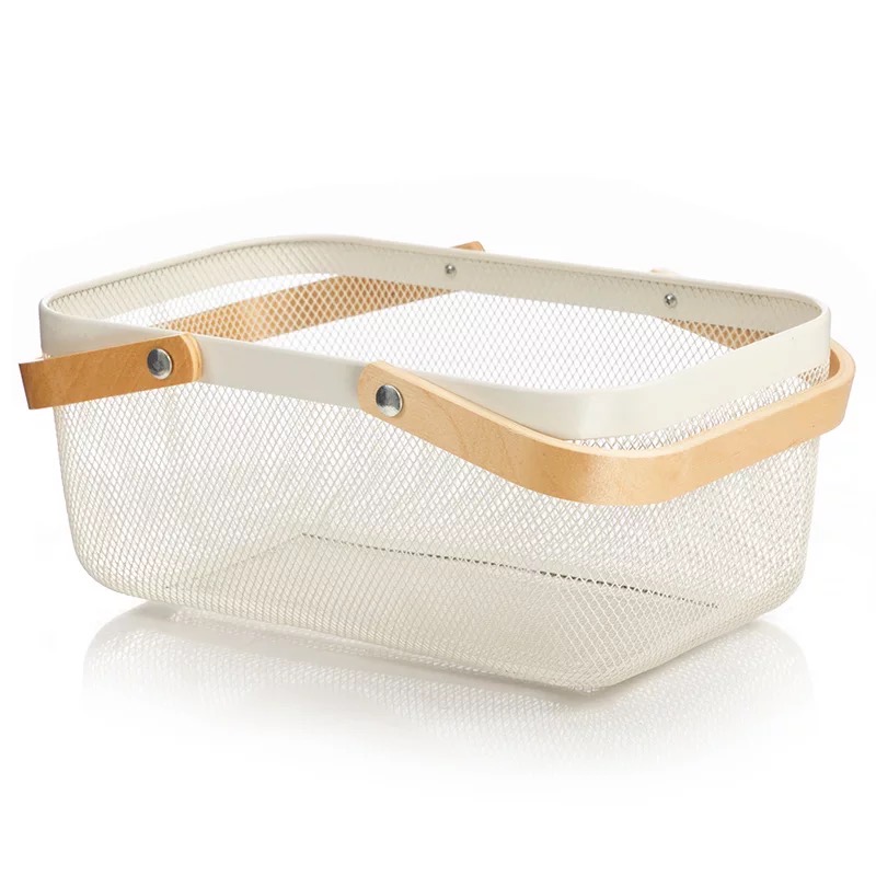 CANASTO DE METAL CON MANIJA DE MADERA