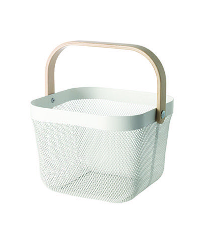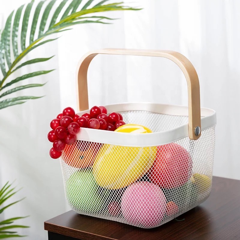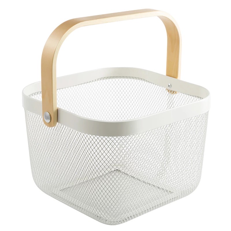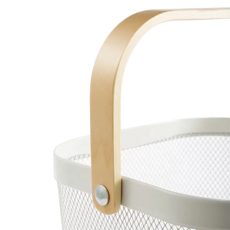 CANASTO DE METAL CON MANIJA DE MADERA
