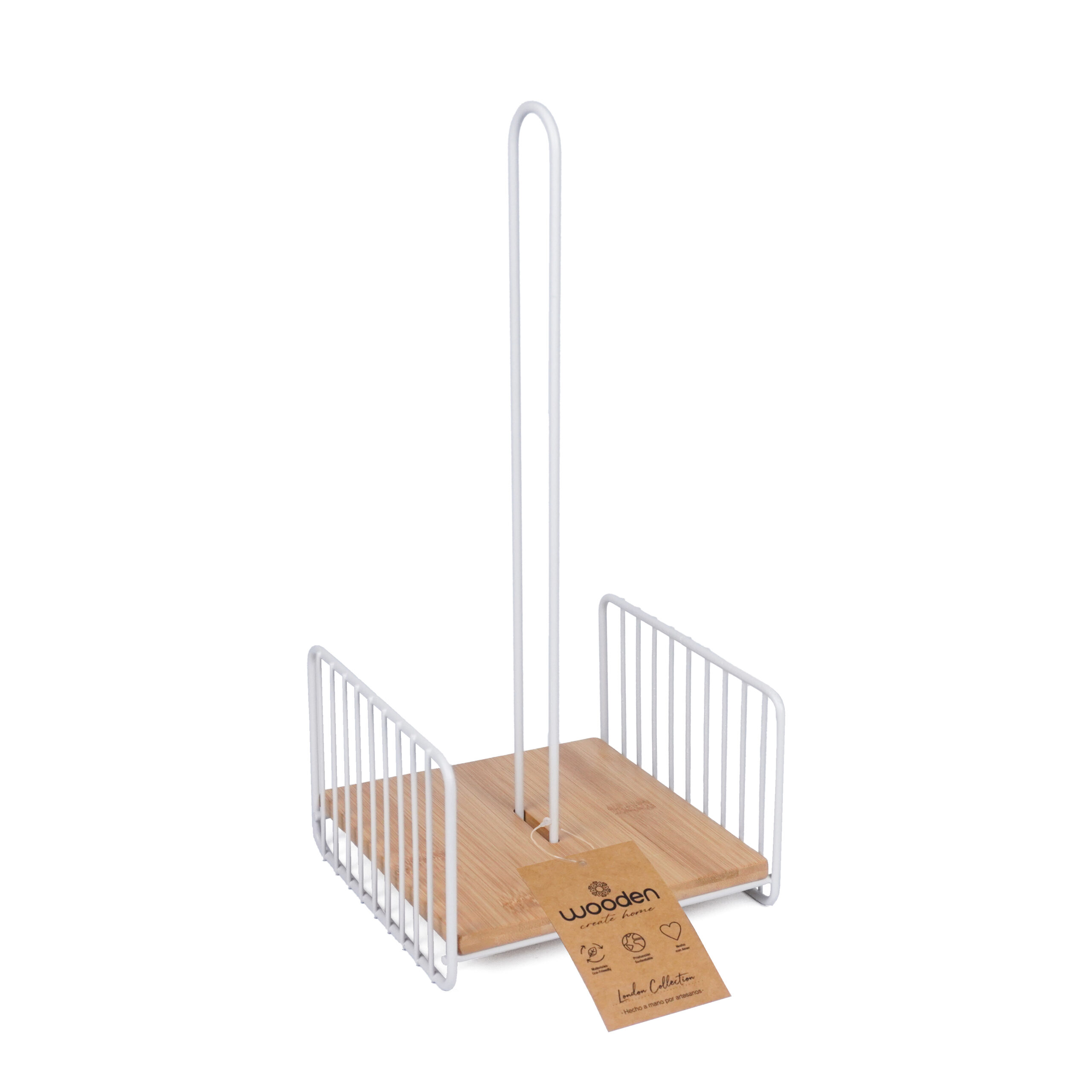 CANASTO DE METAL CON MANIJA DE MADERA
