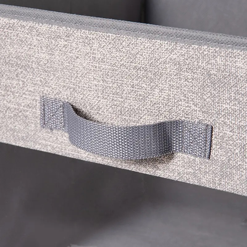 CAJA PLEGABLE FORRADA EN LINO MANIJA DE MADERA (L)