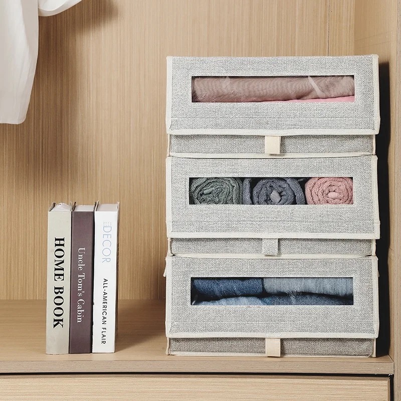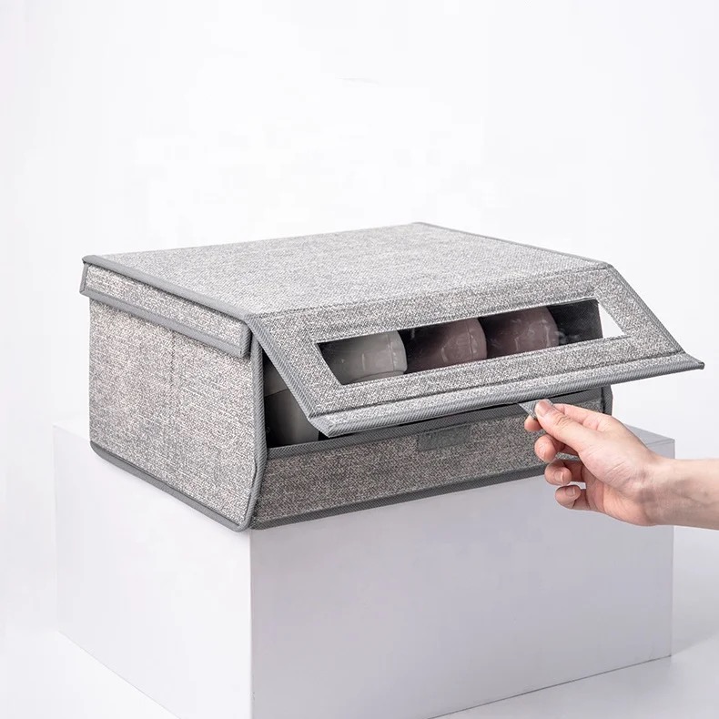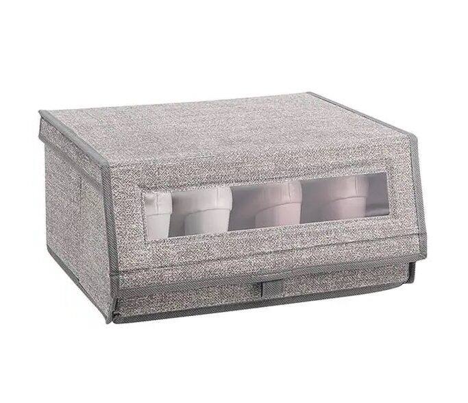 CAJA PLEGABLE FORRADA EN LINO MANIJA DE MADERA (S)