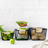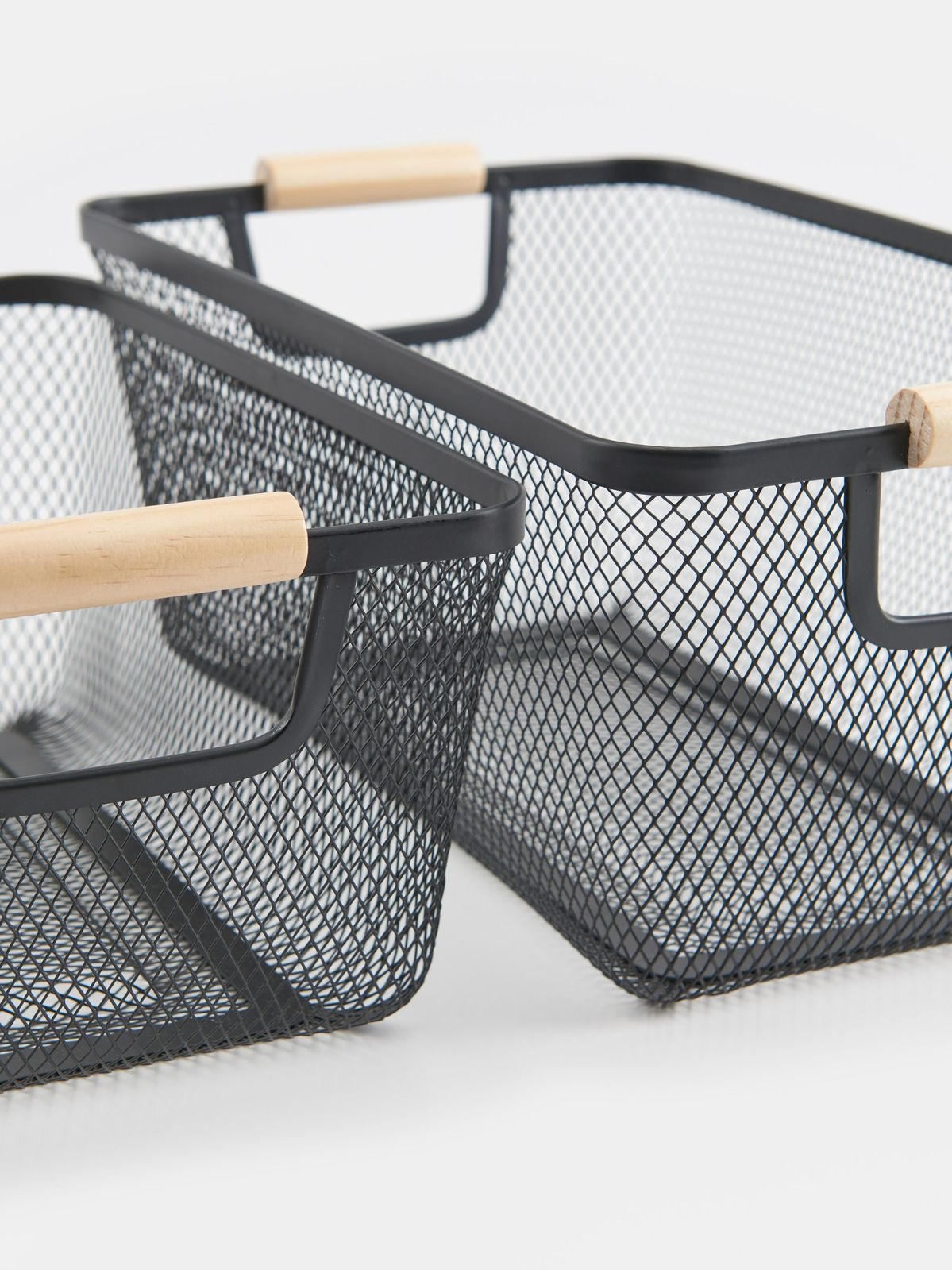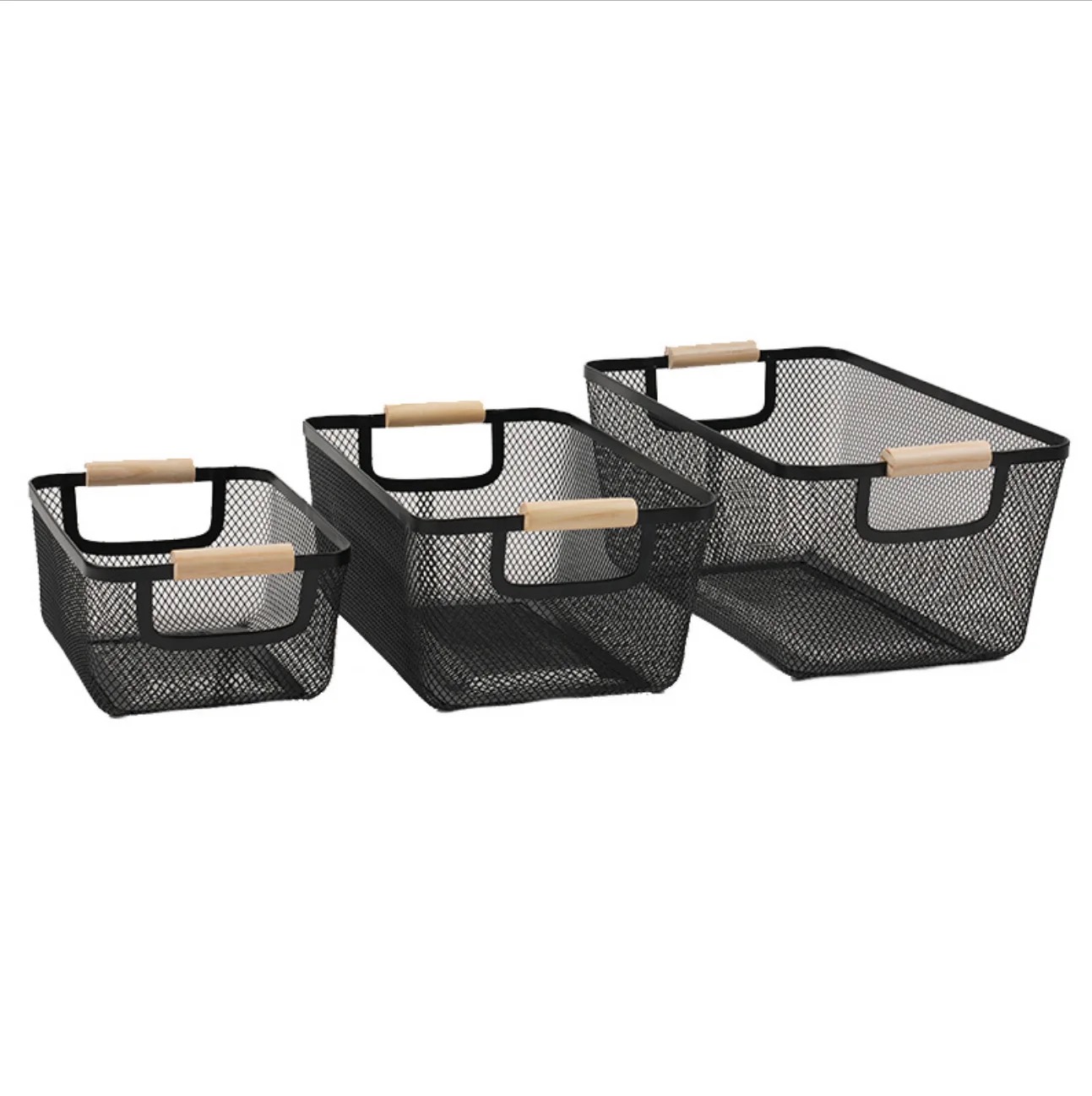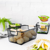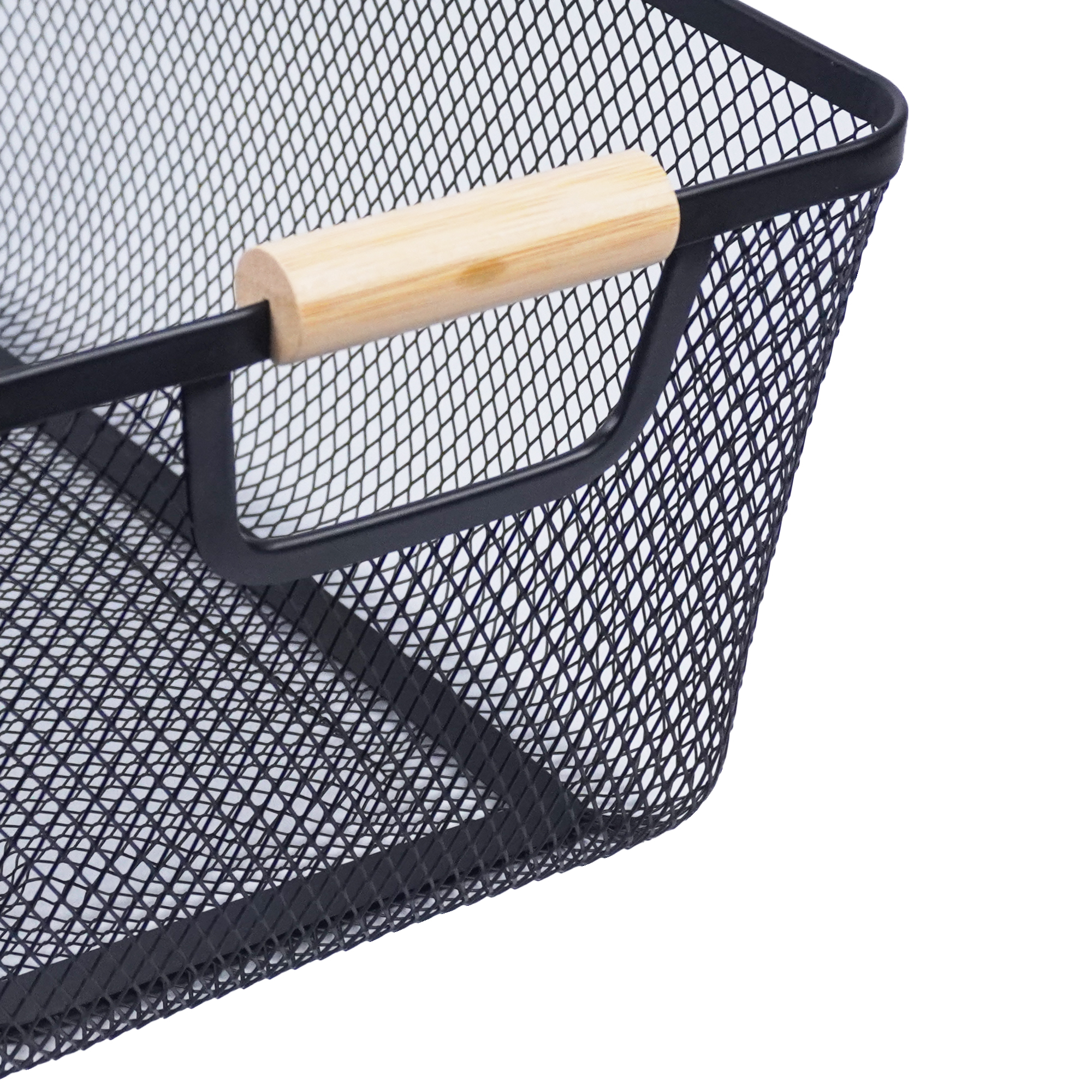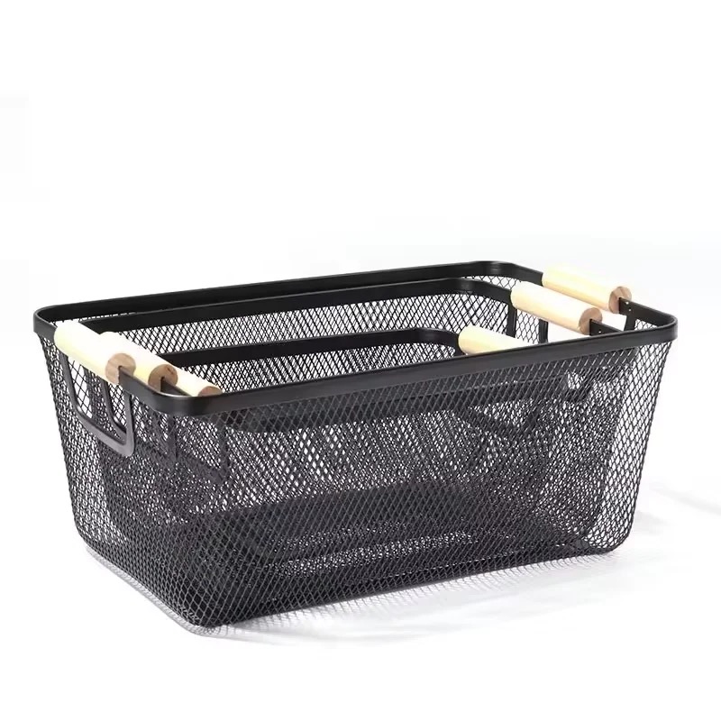 CANASTO DE METAL RECTANG. 2 PISOS CON MANIJA DE MADERA