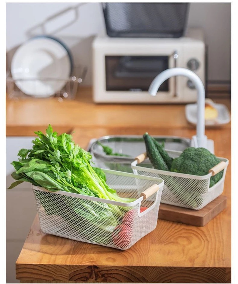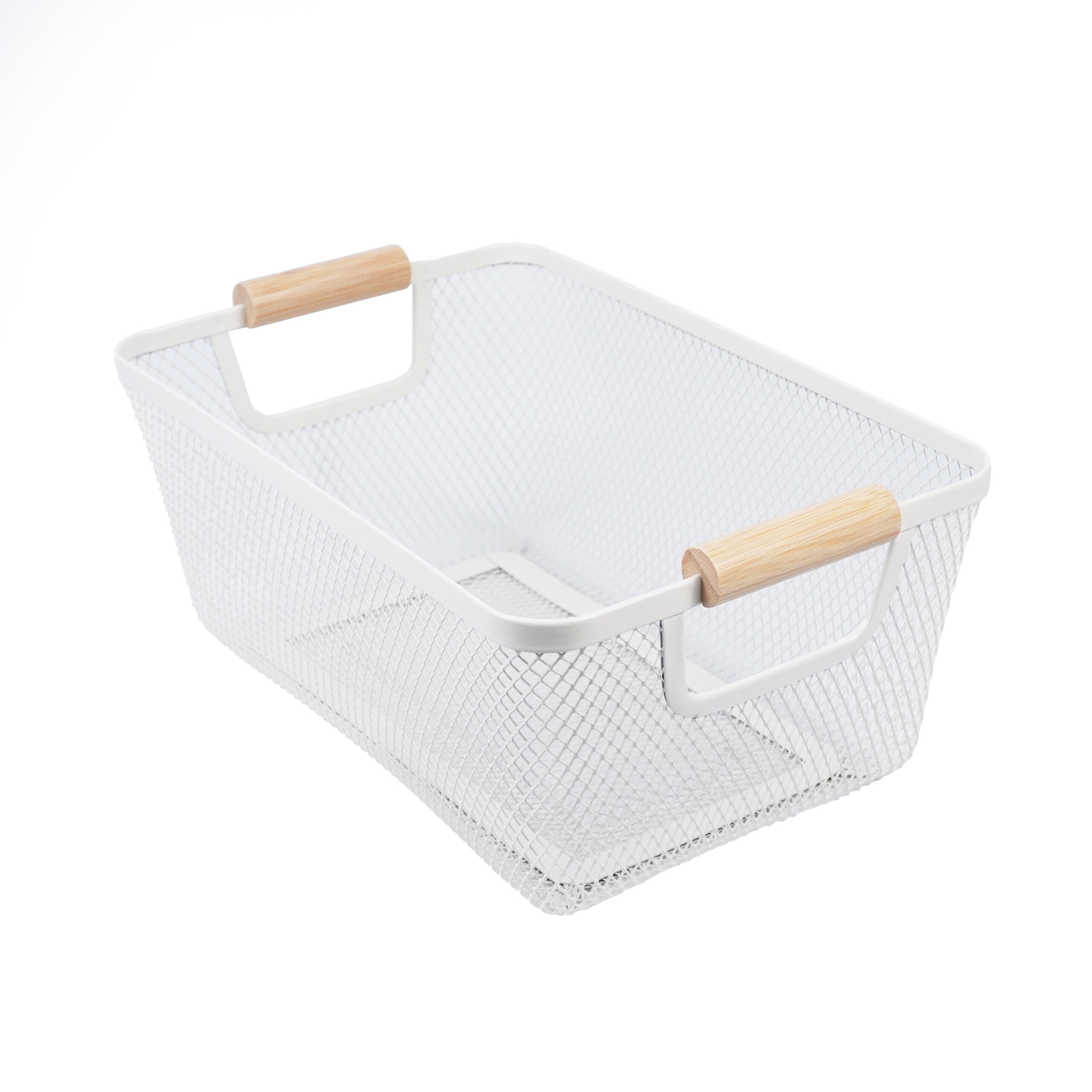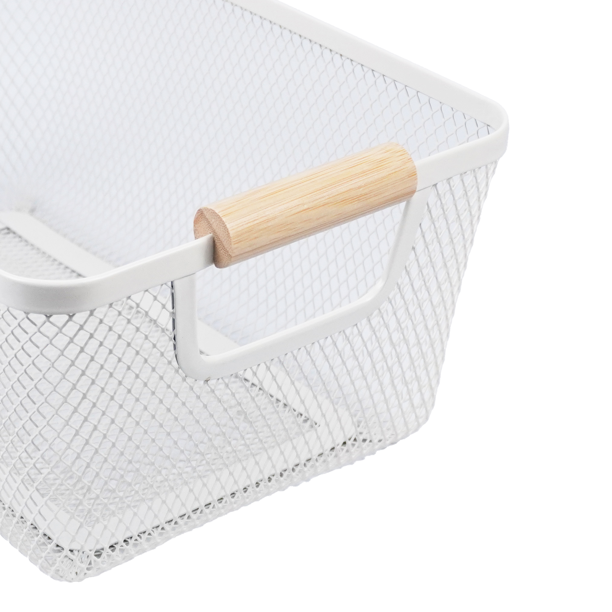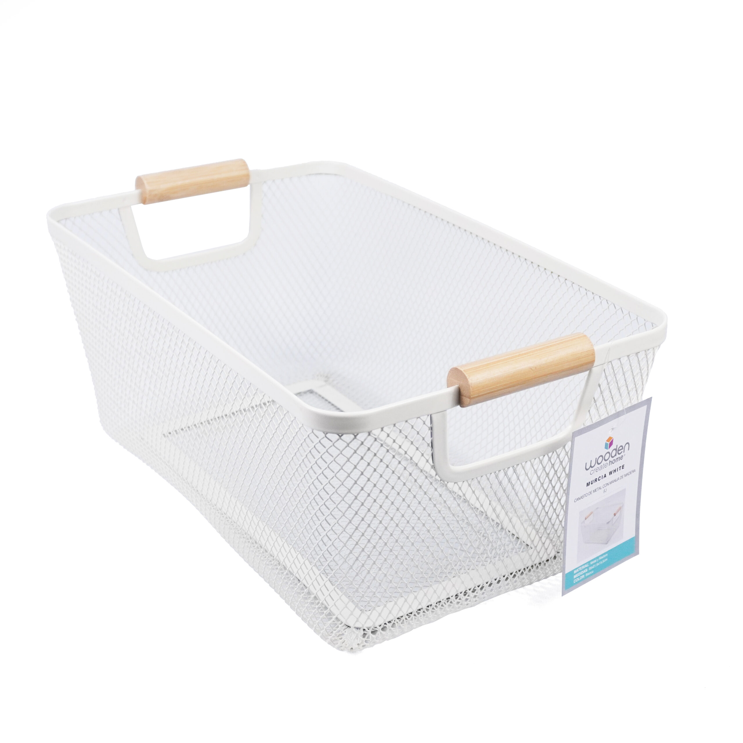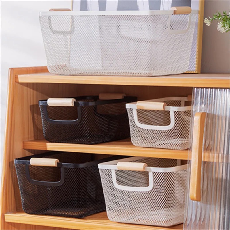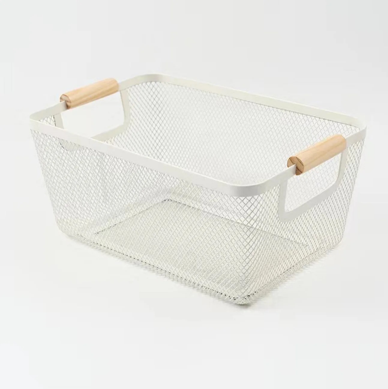CANASTO DE METAL RECTANG. 2 PISOS CON MANIJA DE MADERA