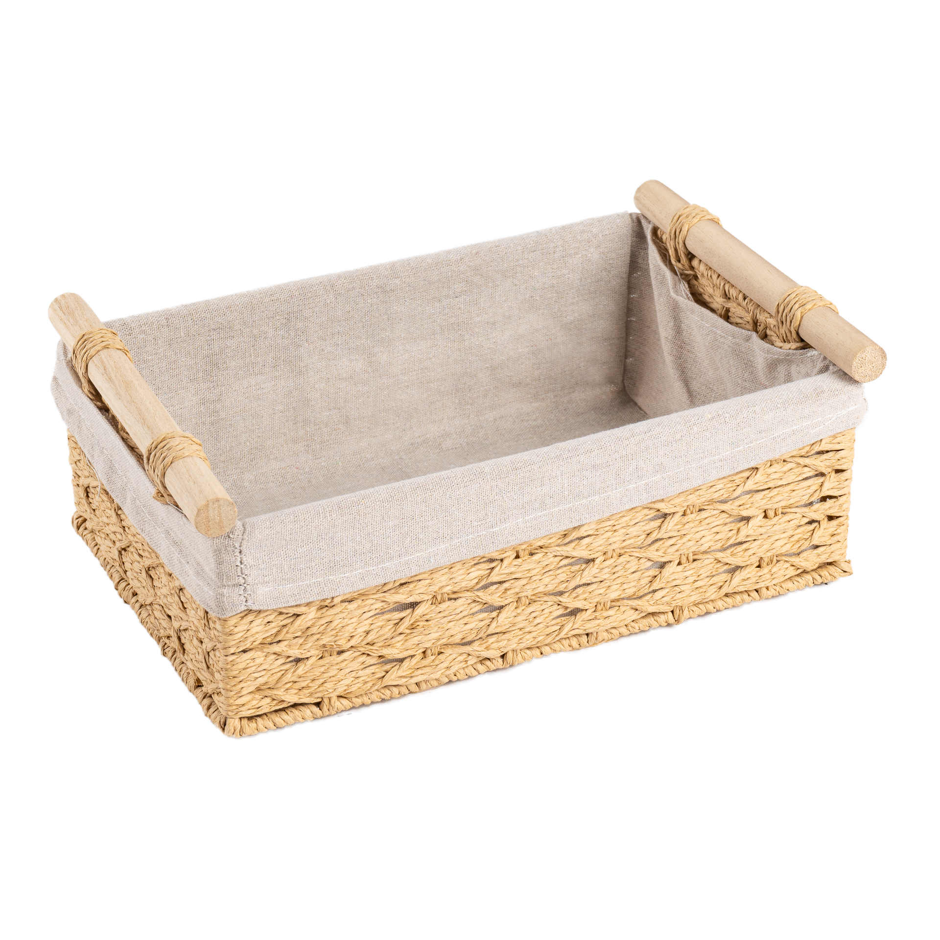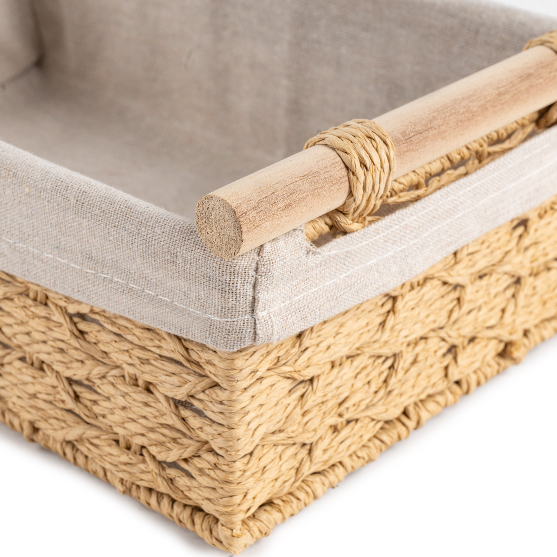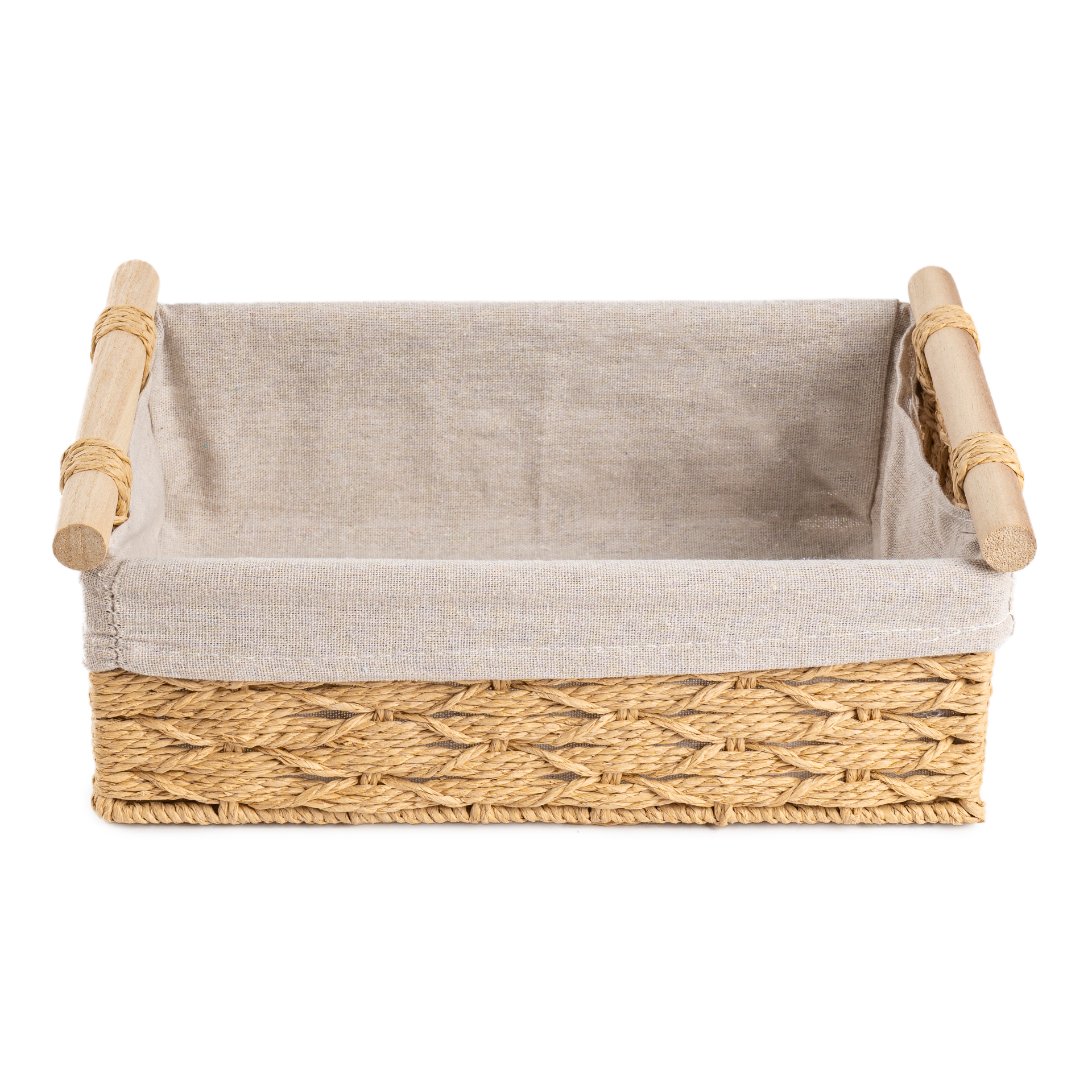 CAJA PLEGABLE FORRADA EN LINO MANIJA DE MADERA (L)