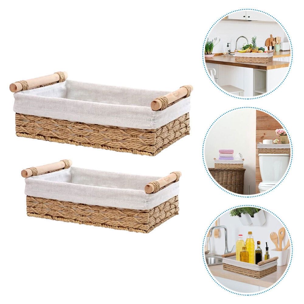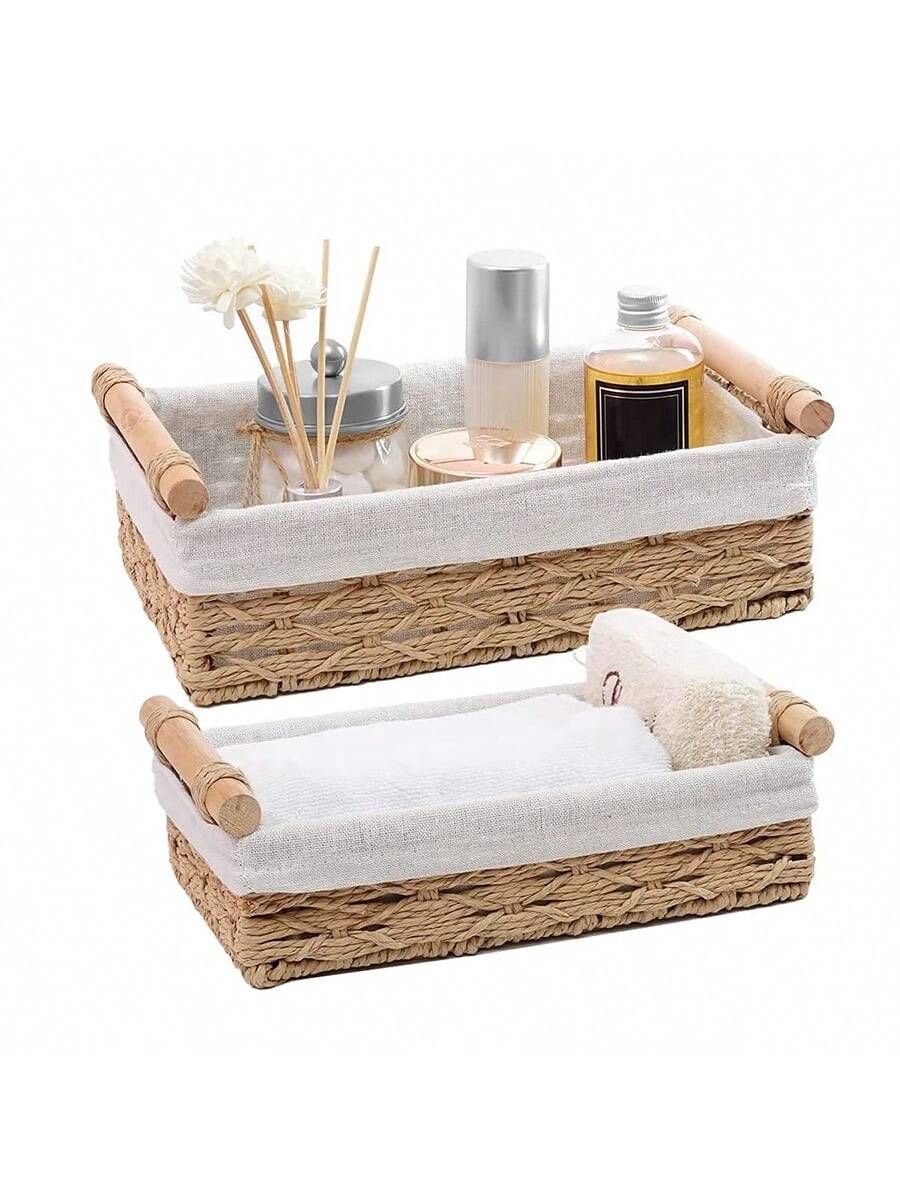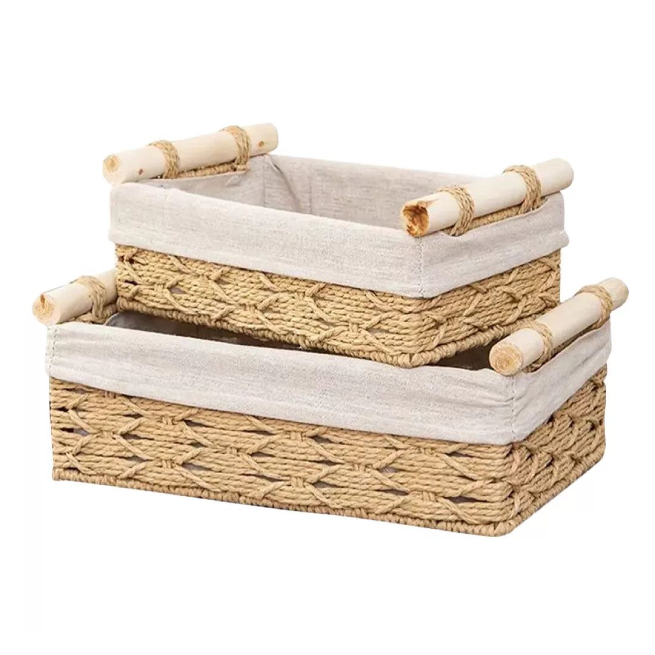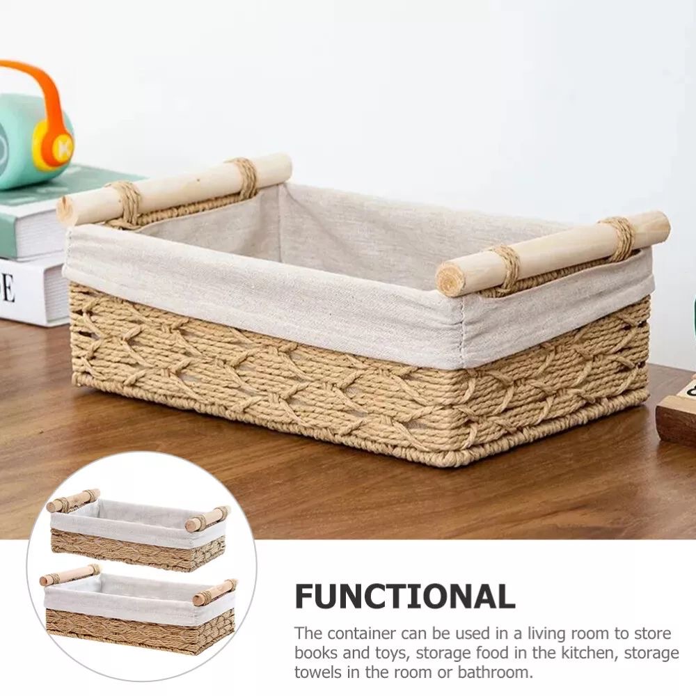 CAJA PLEGABLE FORRADA EN LINO MANIJA DE MADERA (L)
