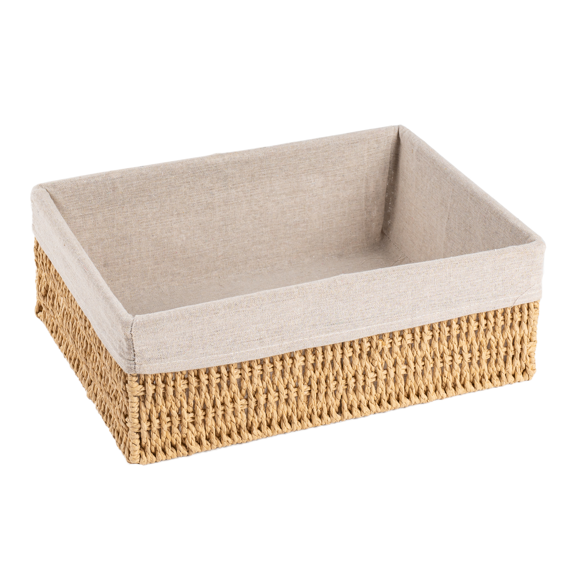 CAJA PLEGABLE FORRADA EN LINO MANIJA DE MADERA (L)