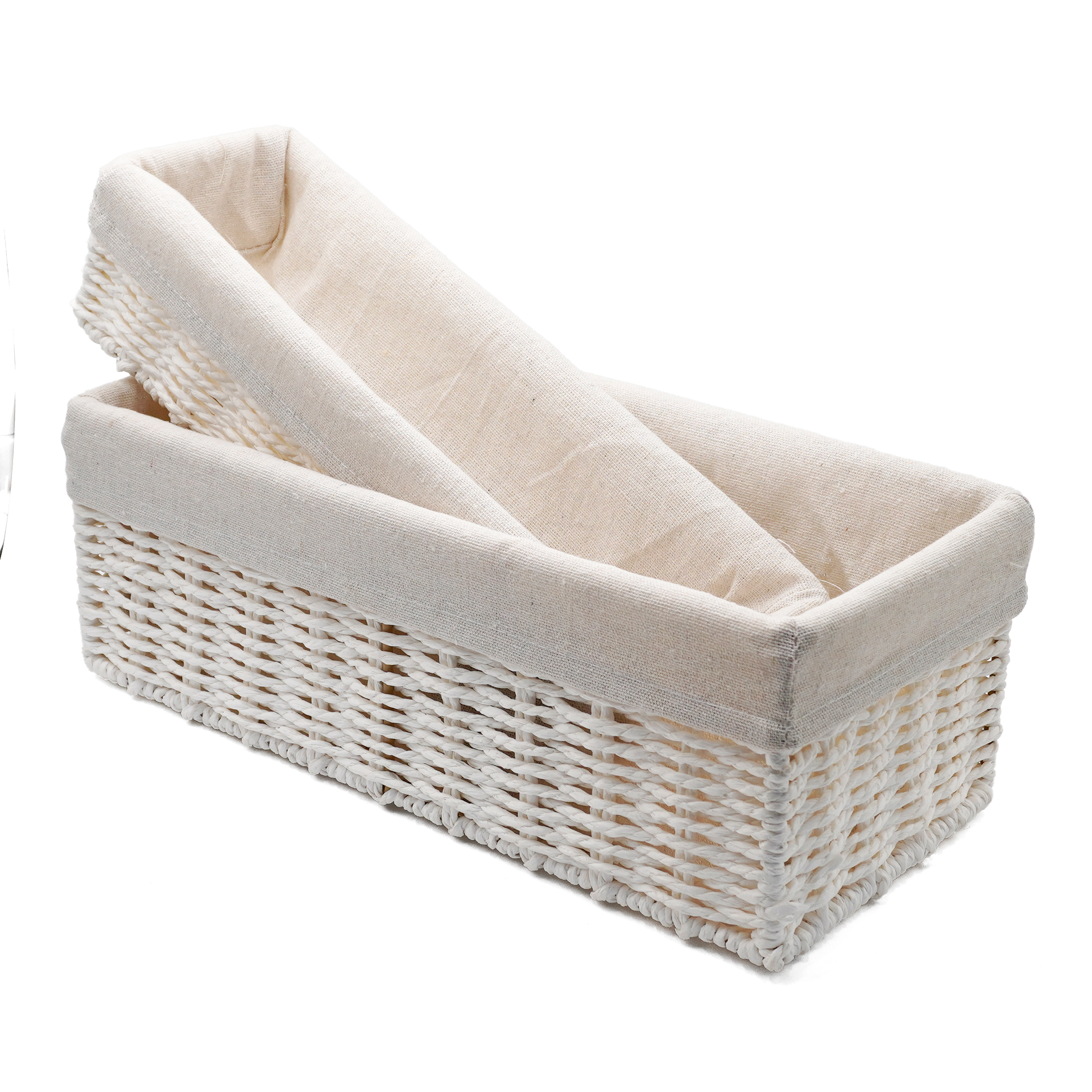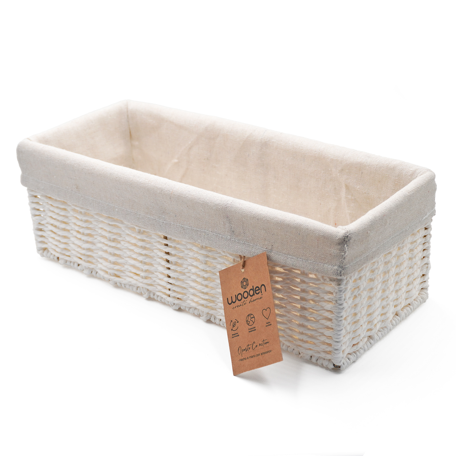 CAJA PLEGABLE FORRADA EN LINO MANIJA DE MADERA (L)