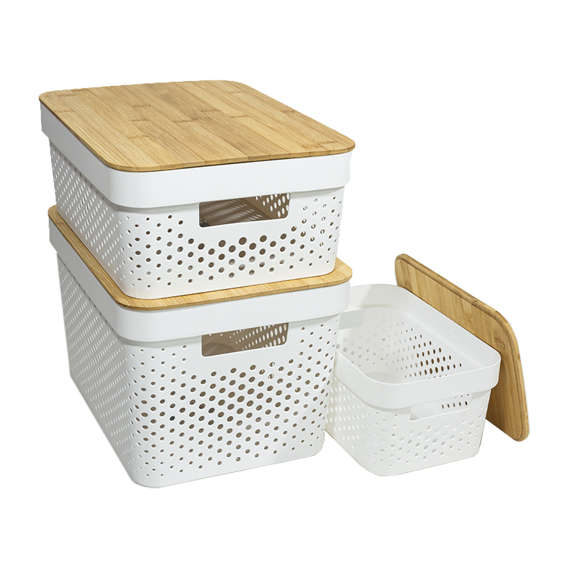 CAJA DE PLÁSTICO CON TAPA BAMBU NORDICA (M)