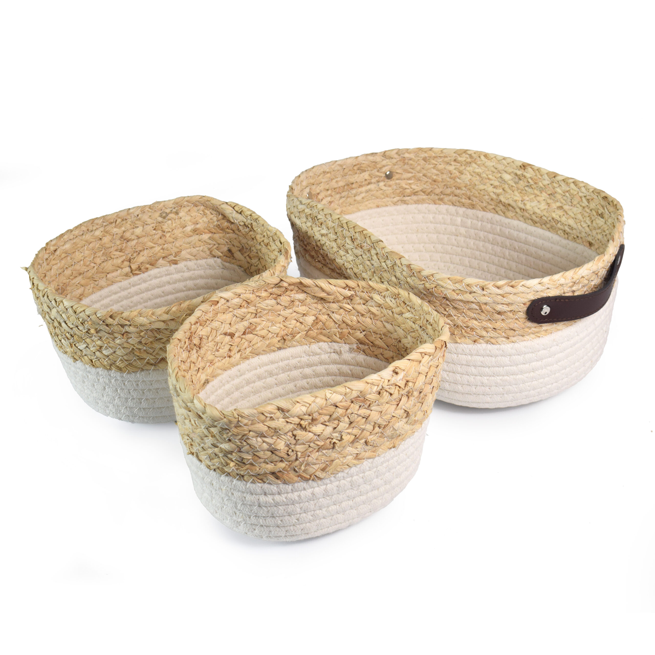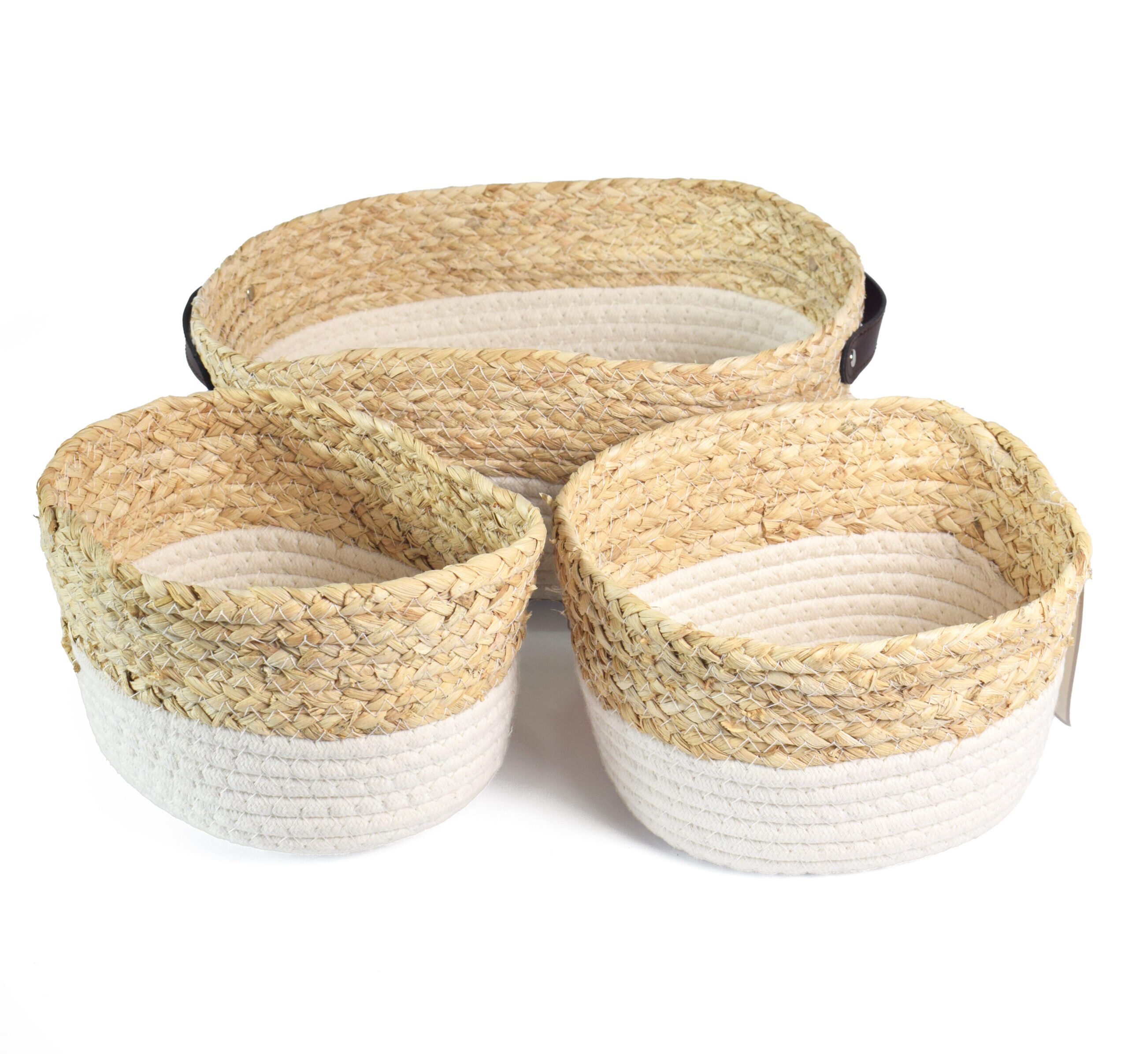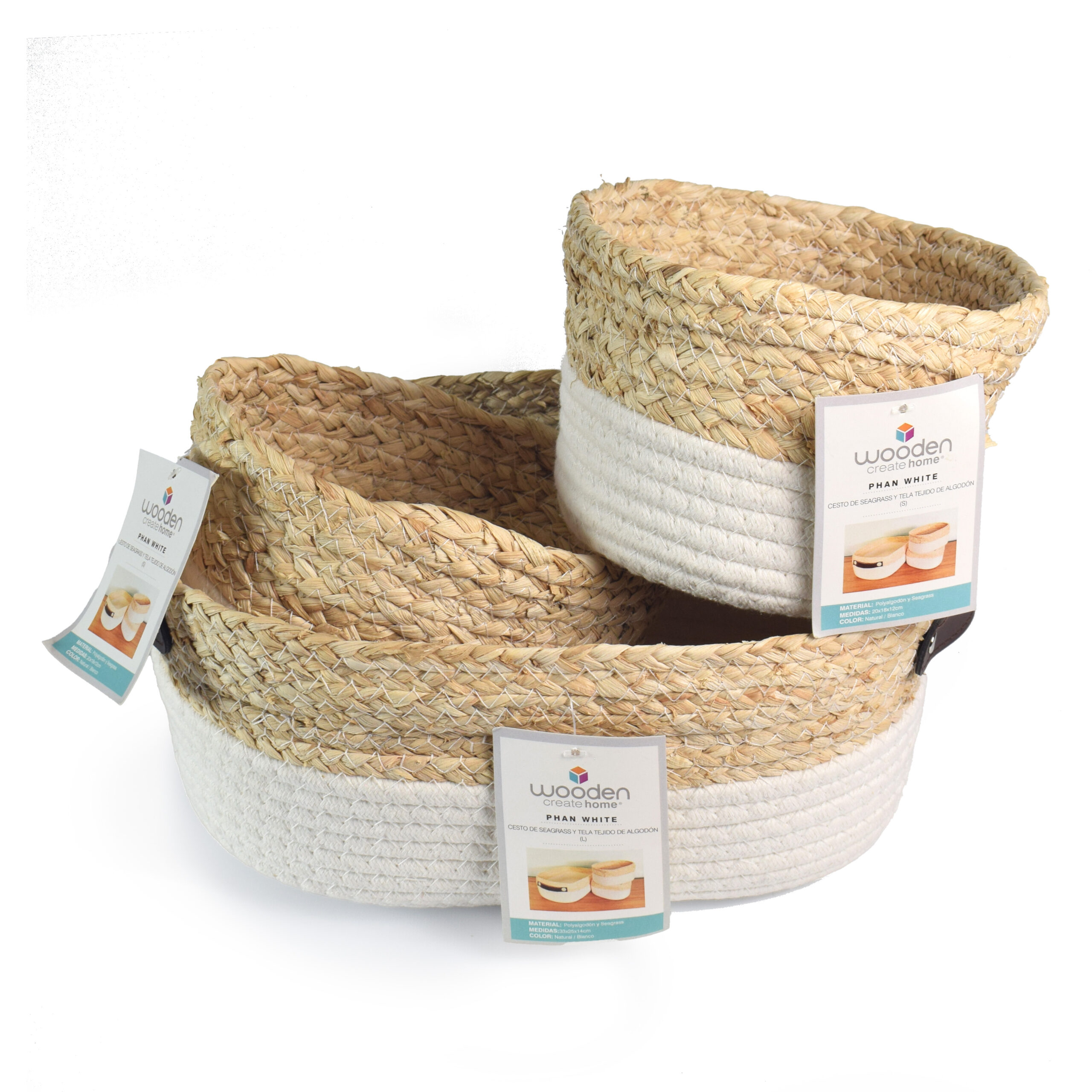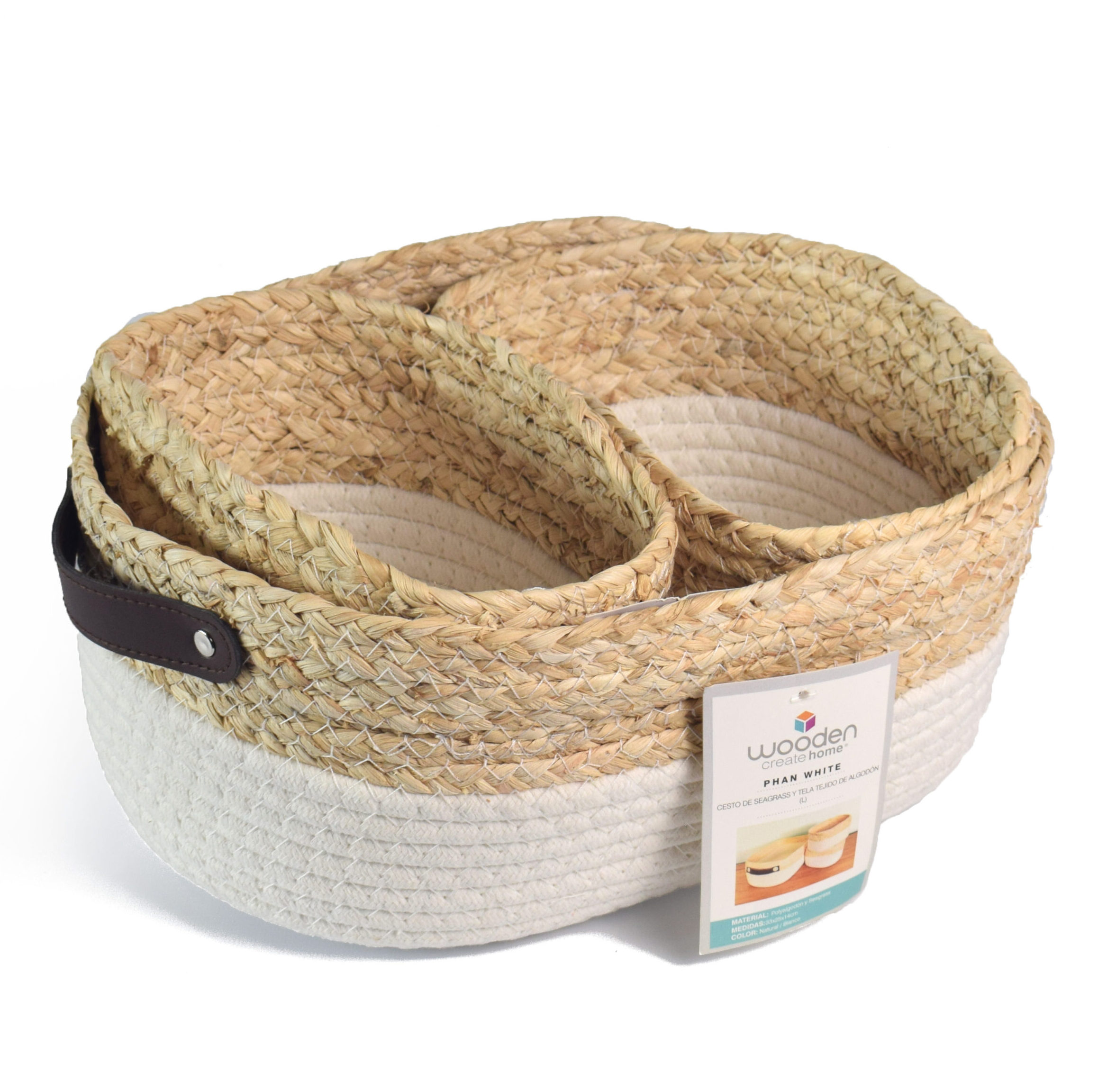 CESTO DE TELA TEJIDO DE ALGODÓN CON MANIJA (L)