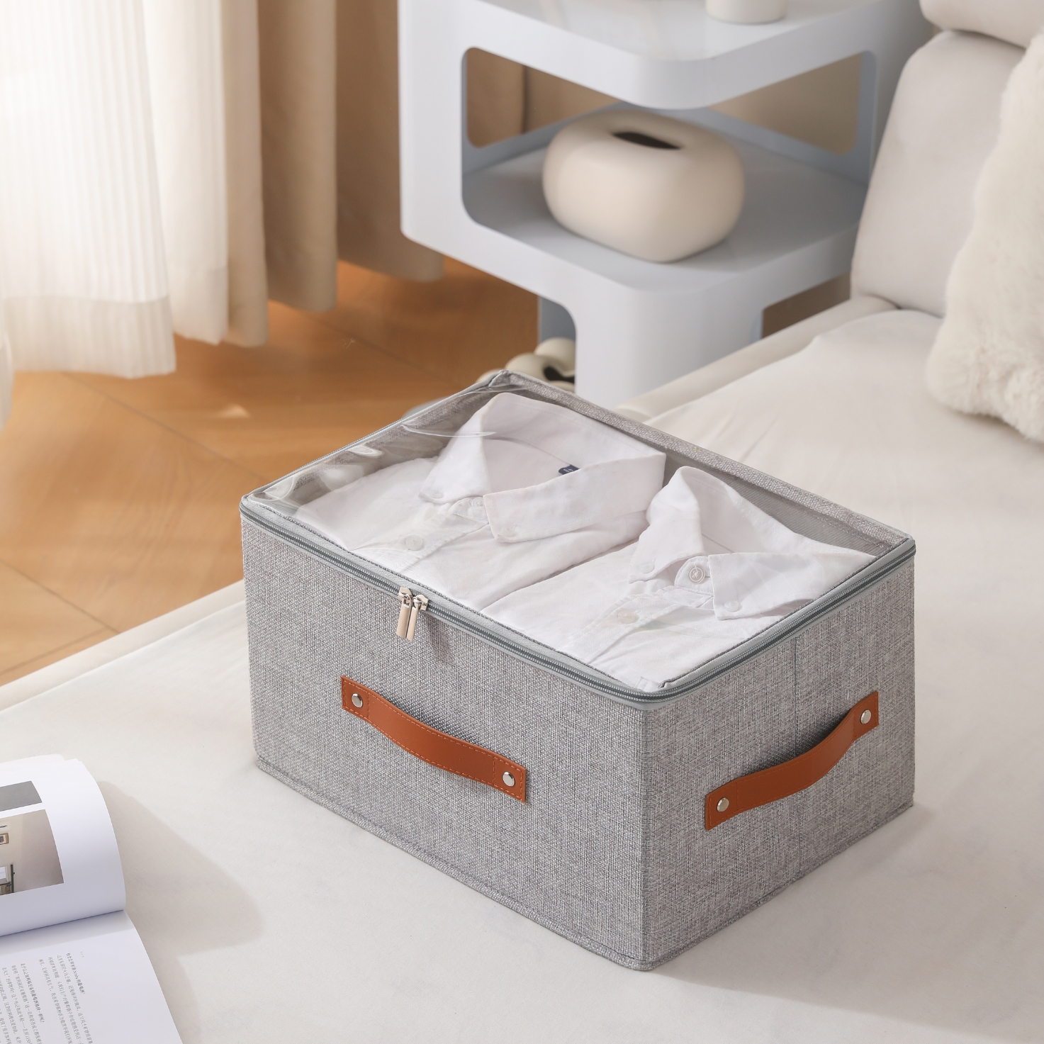 CAJA DE PLÁSTICO CON TAPA BAMBU NORDICA (M)