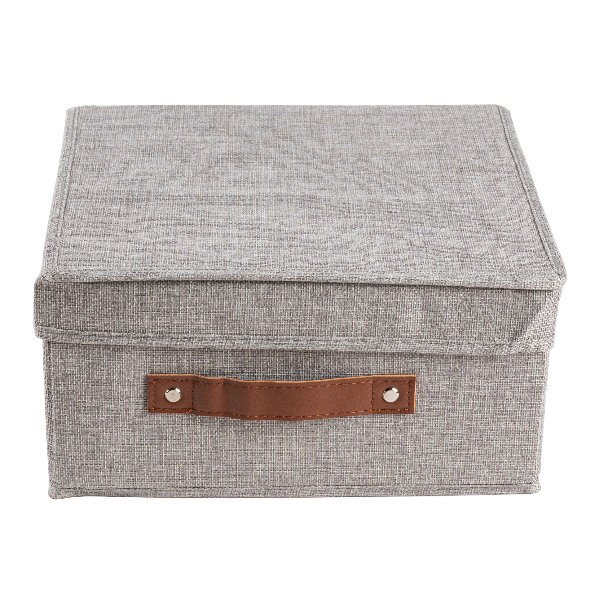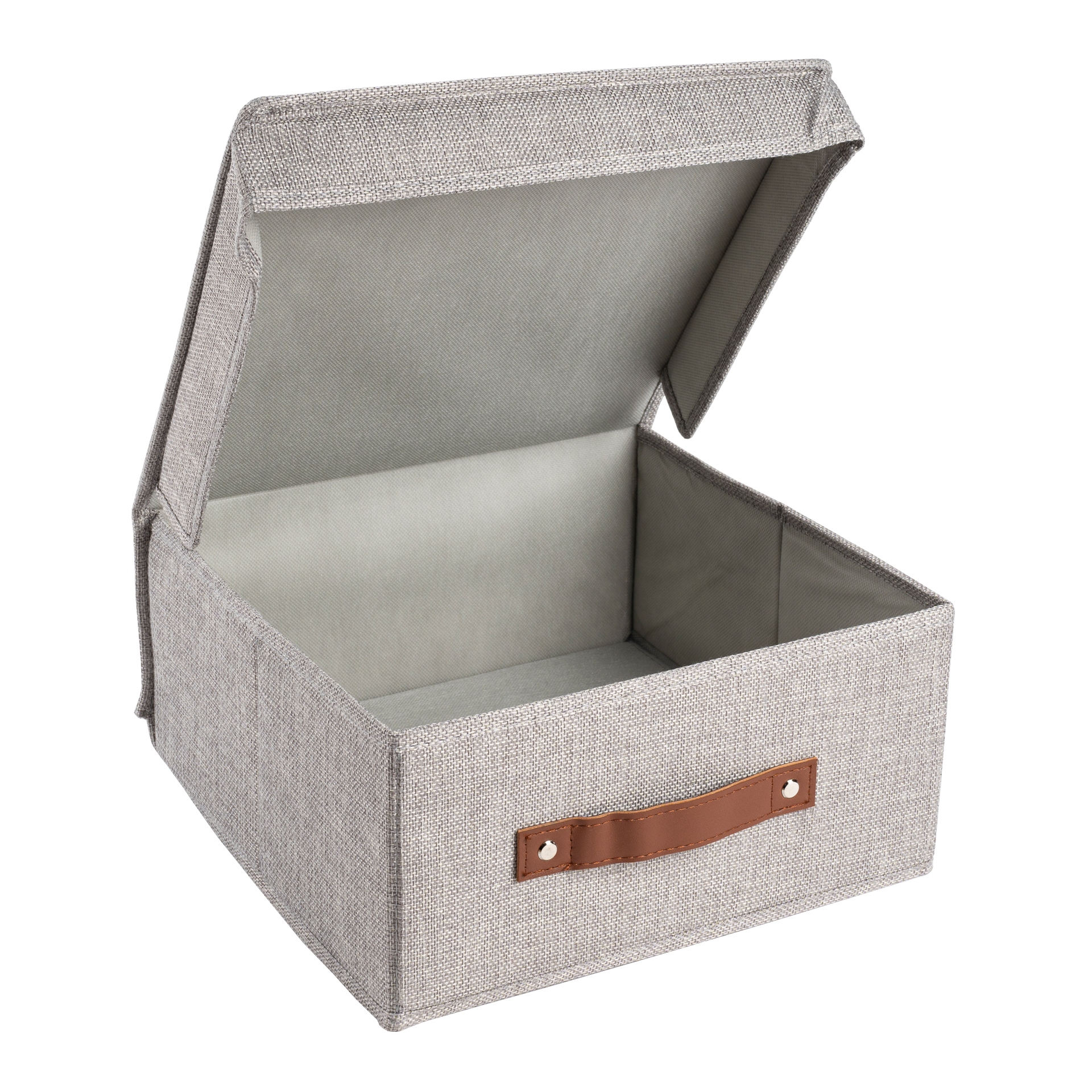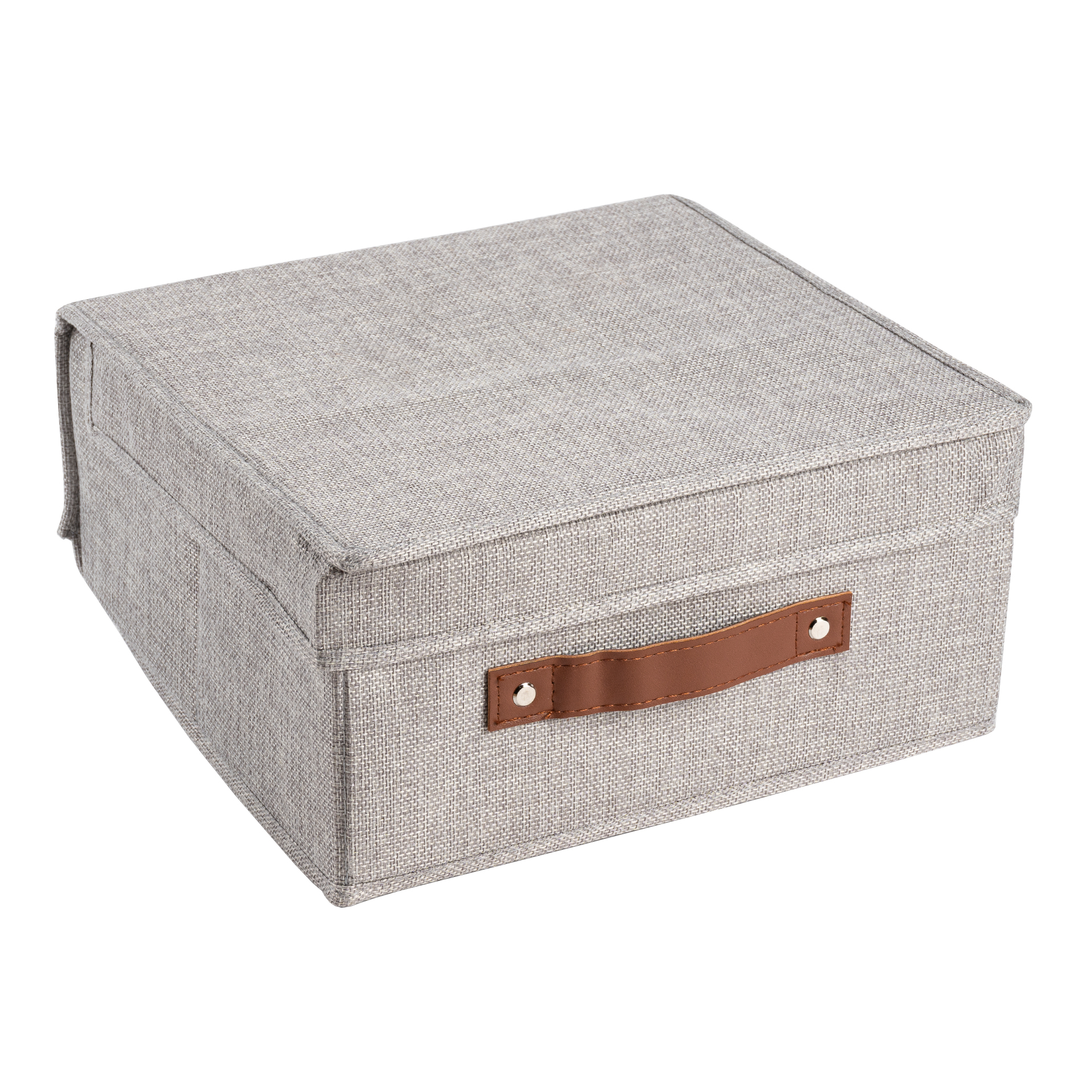 CAJA PLEGABLE FORRADA EN LINO MANIJA DE MADERA (L)