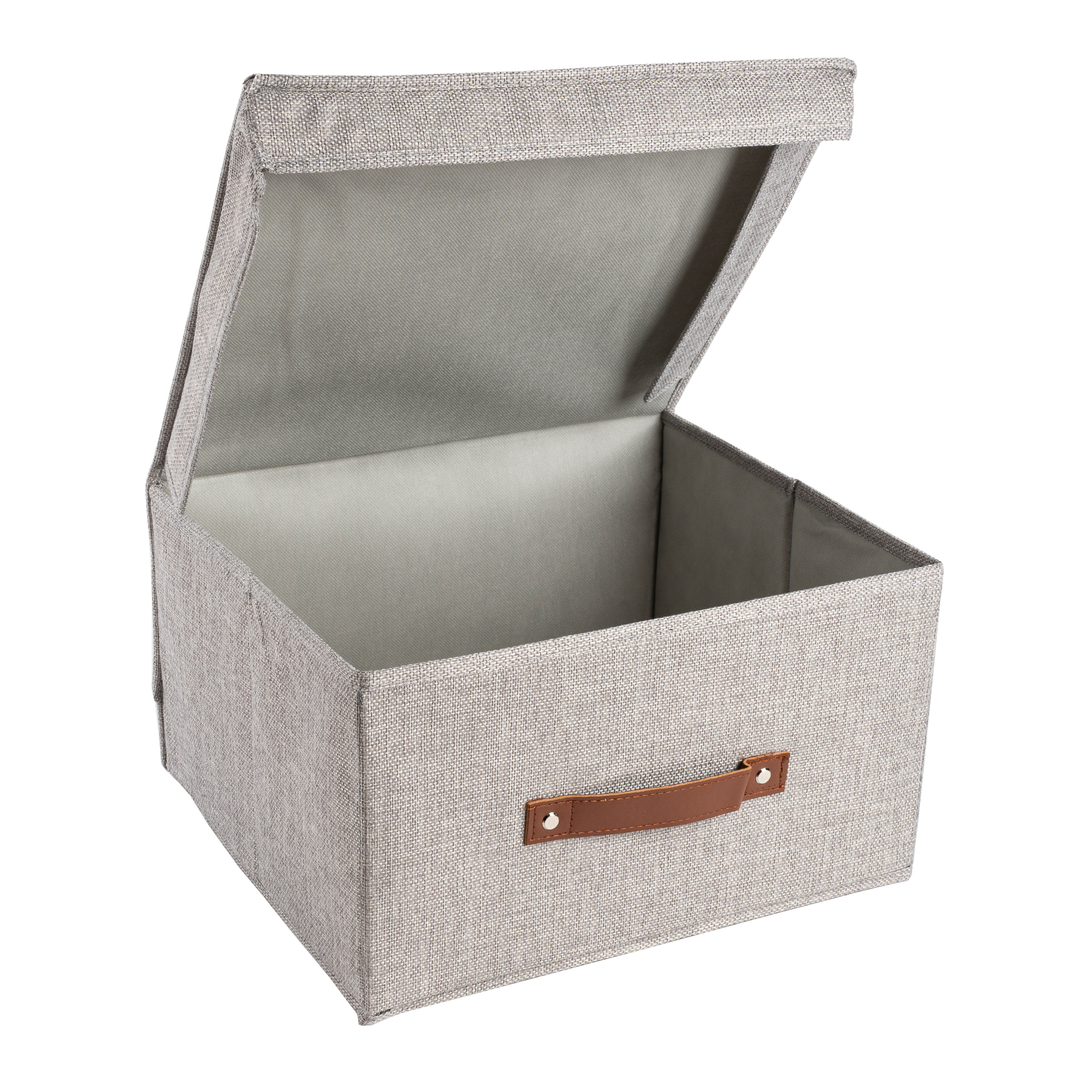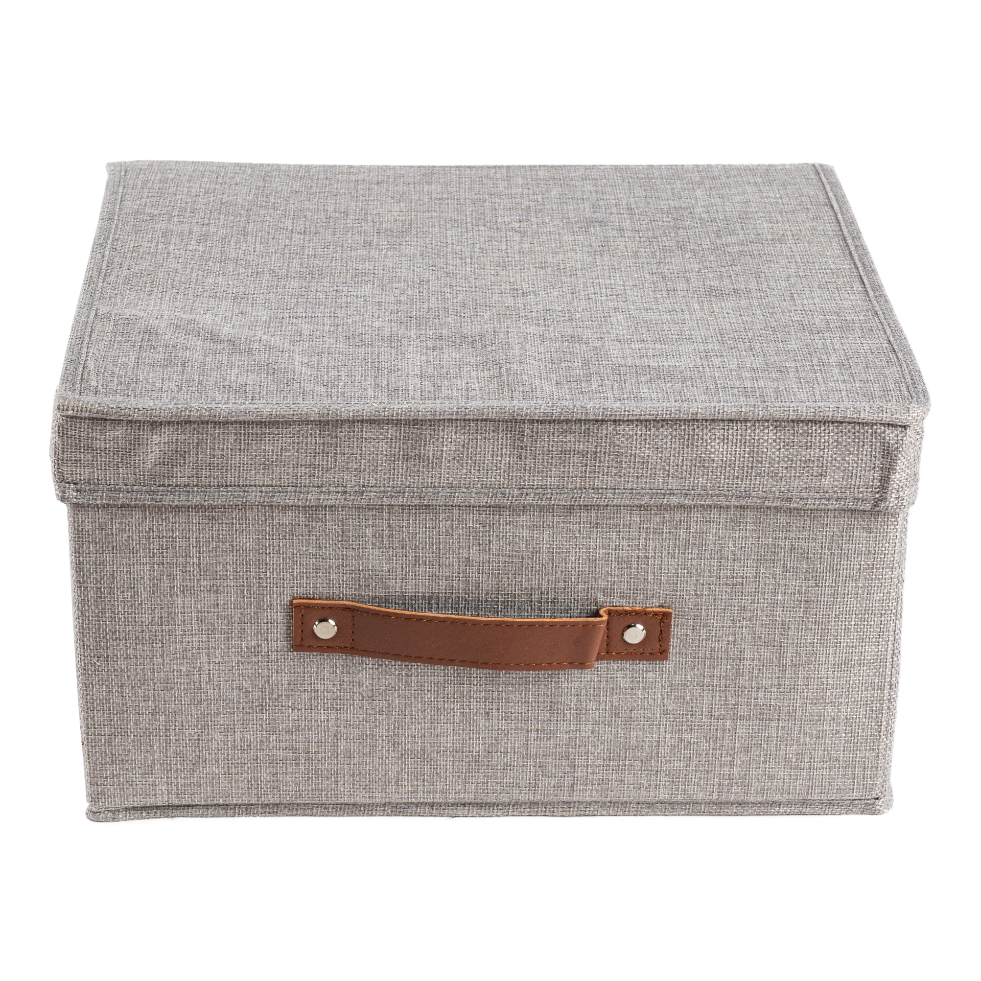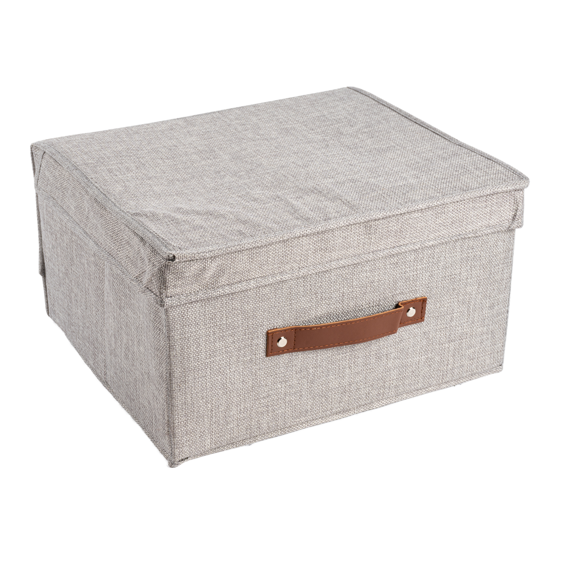 CAJA PLEGABLE FORRADA EN LINO MANIJA DE MADERA (L)