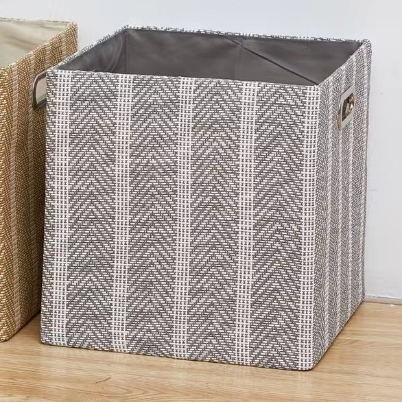 CAJA PLEGABLE FORRADA EN LINO MANIJA DE MADERA (L)