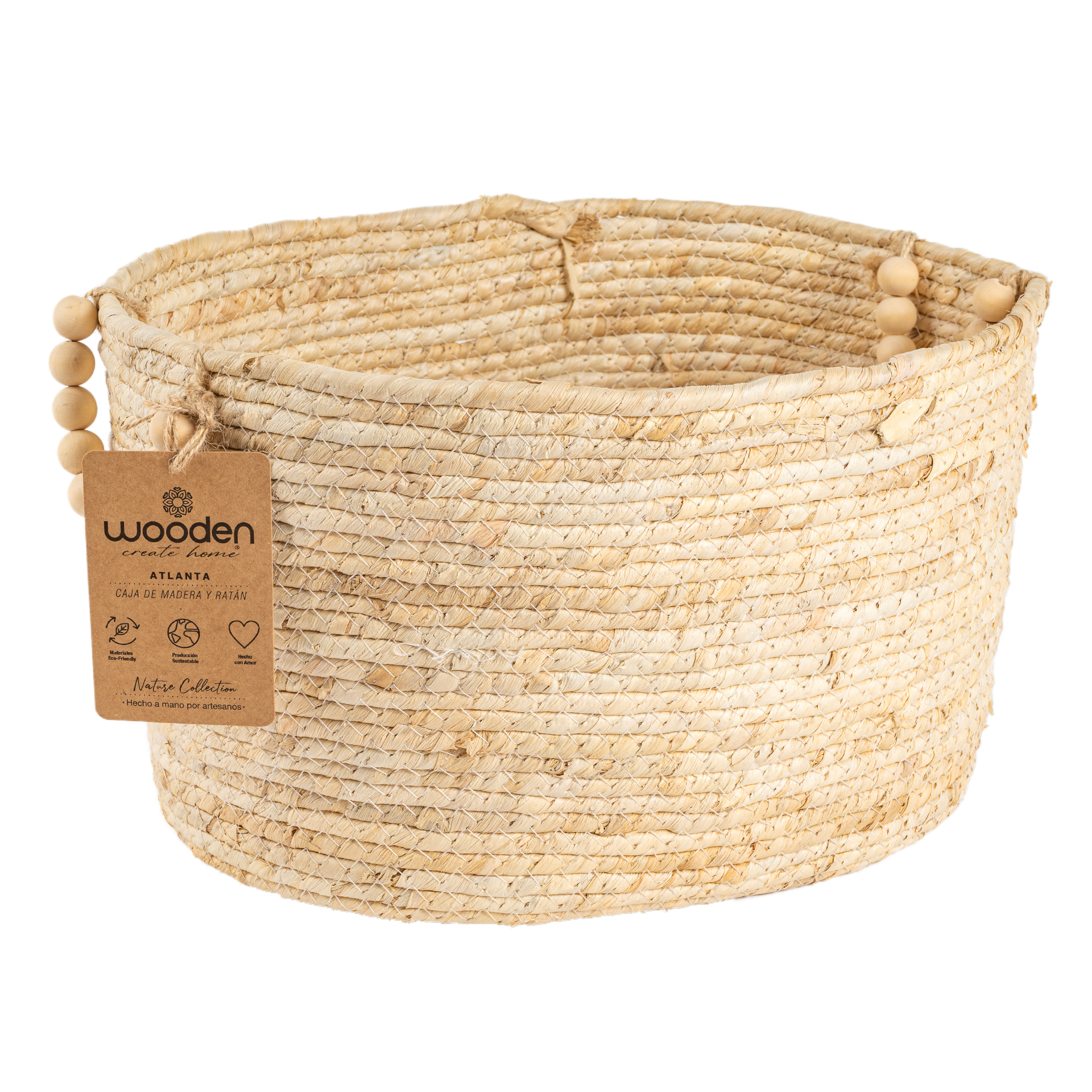CANASTO DE METAL CON 2 MANIJAS DE MADERA