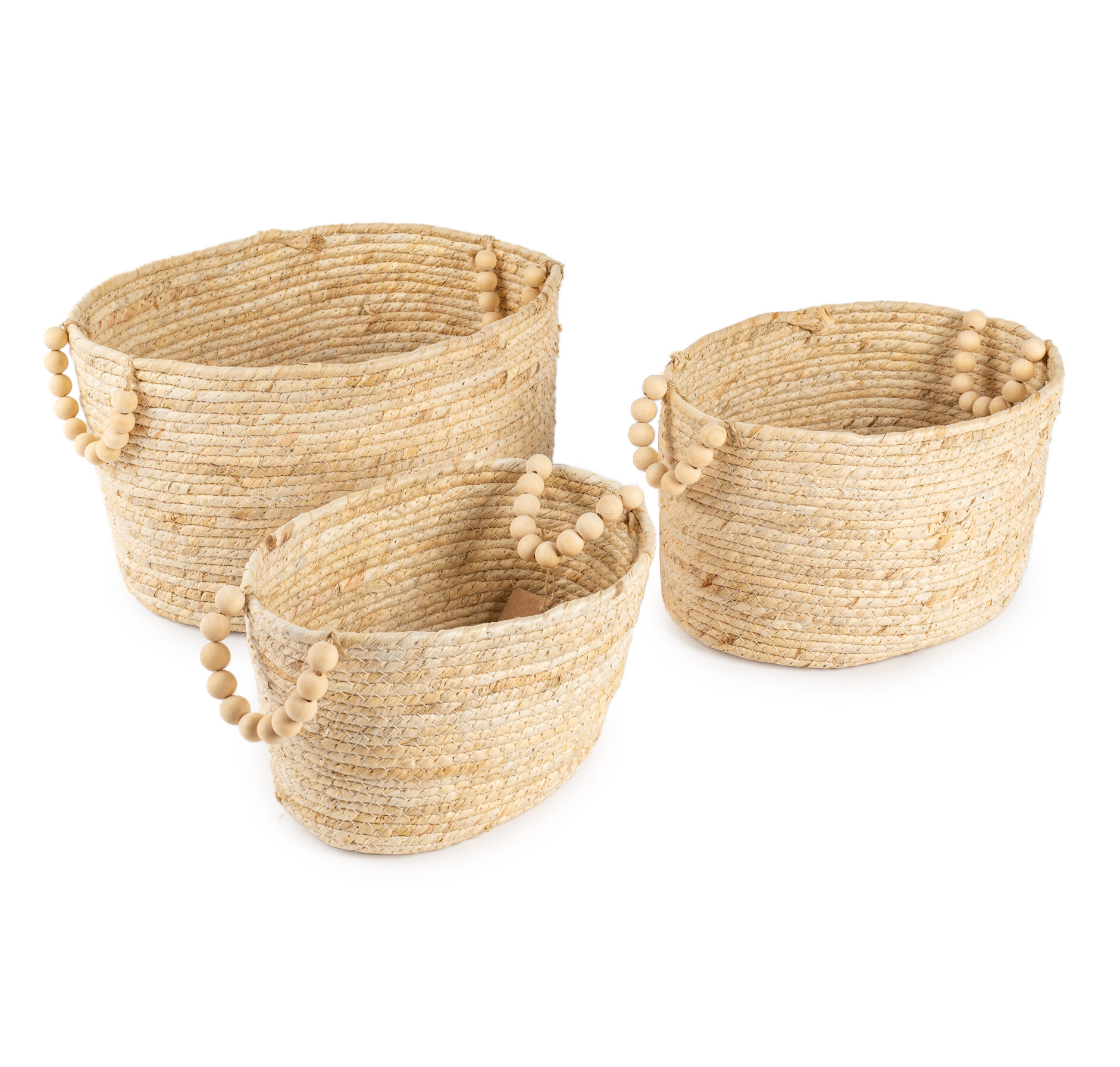 CESTO DE TELA TEJIDO DE ALGODÓN CON MANIJA (L)