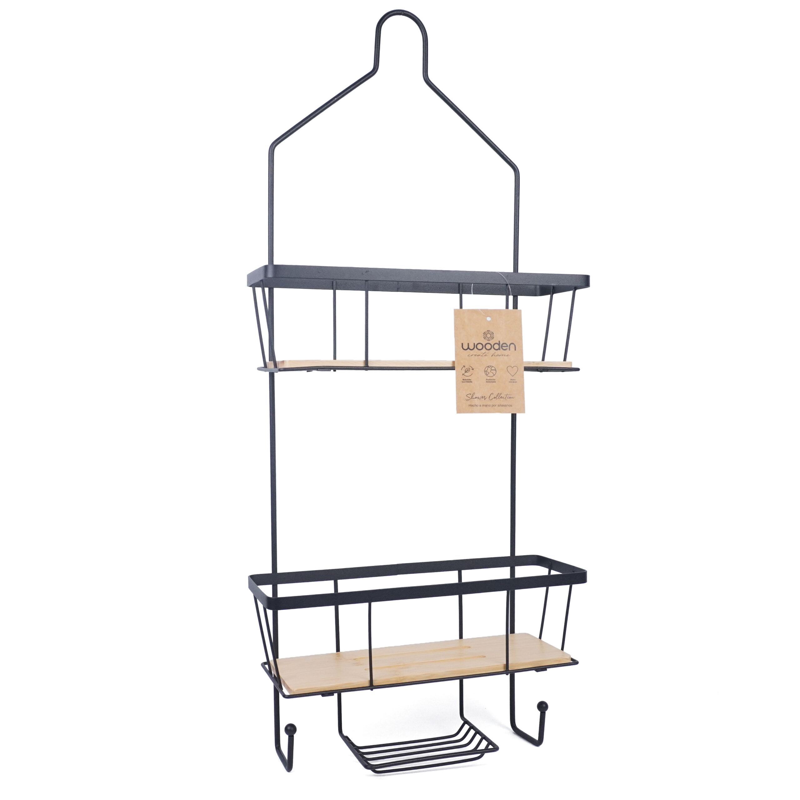 CANASTO DE METAL CON MANIJA DE MADERA