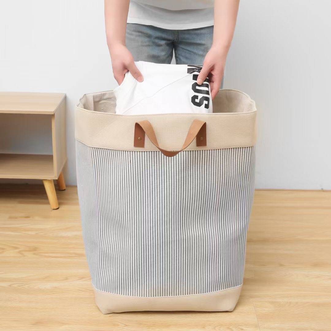 CAJA PLEGABLE FORRADA EN LINO MANIJA DE MADERA (L)