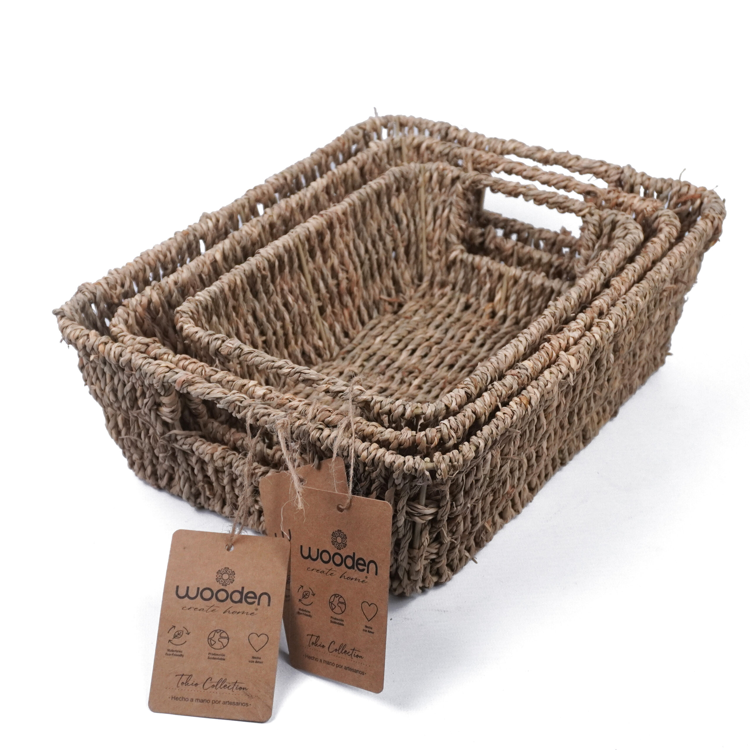 CAJA PLEGABLE FORRADA EN LINO MANIJA DE MADERA (L)