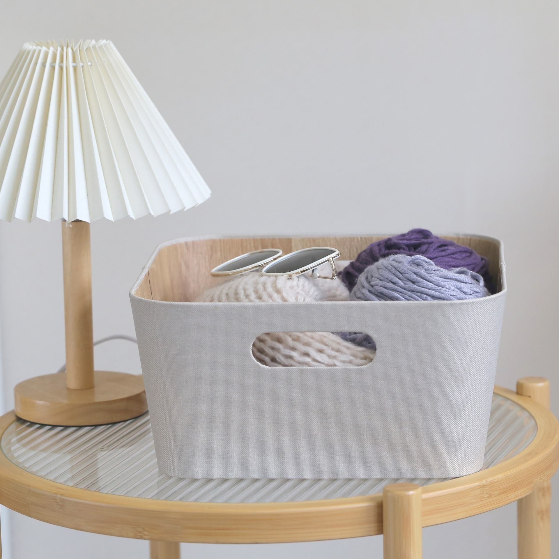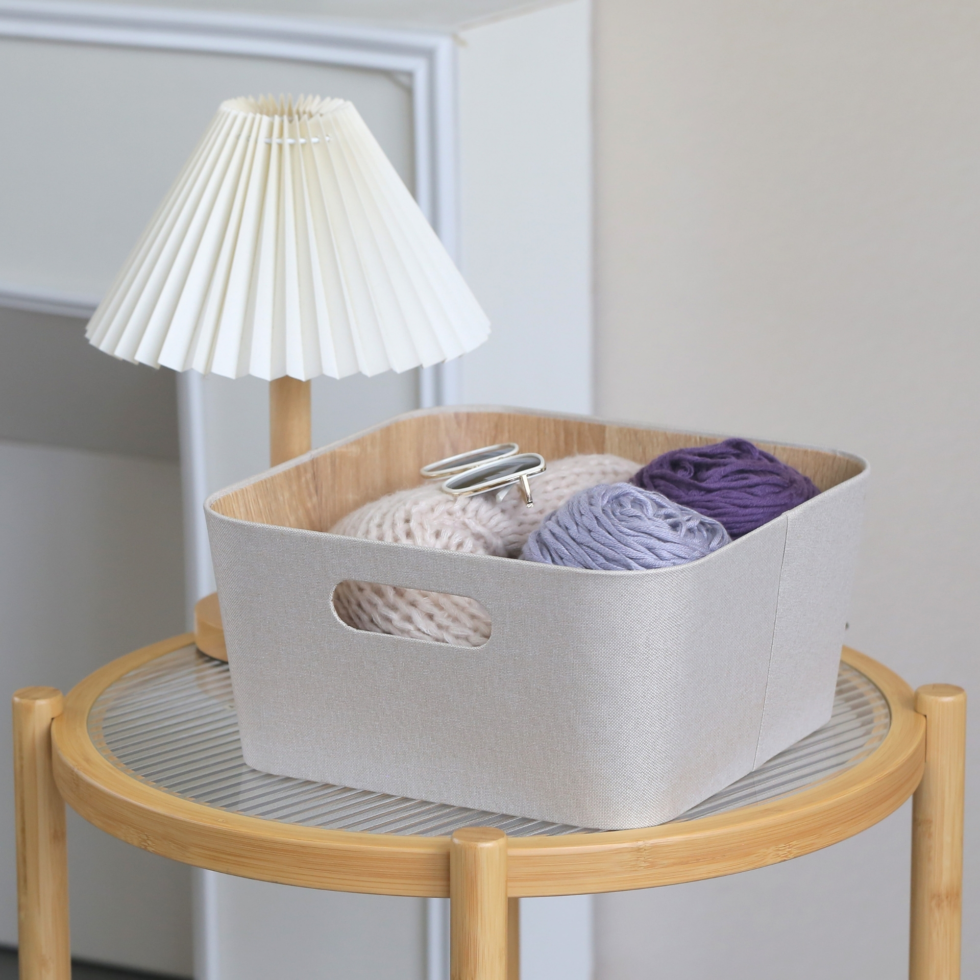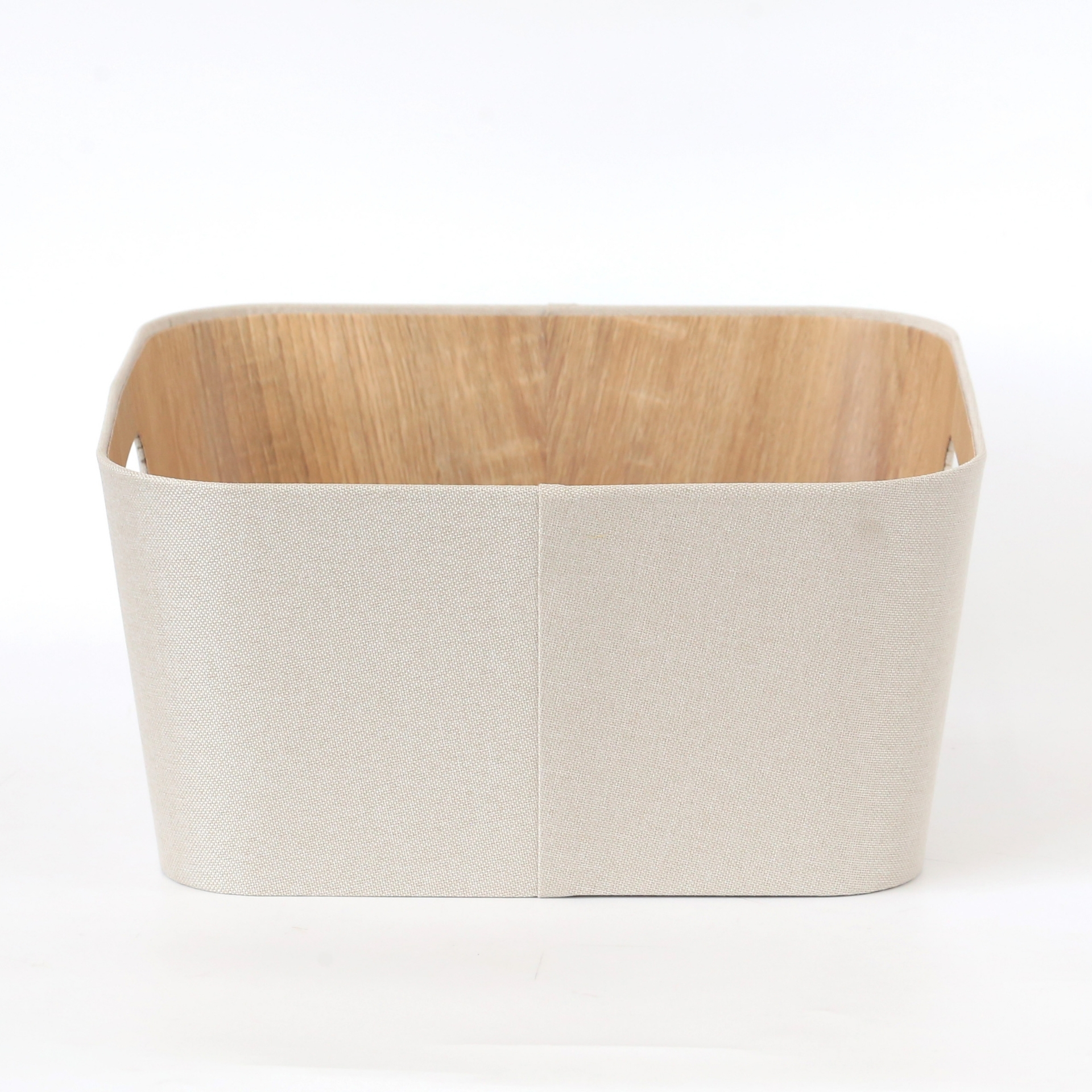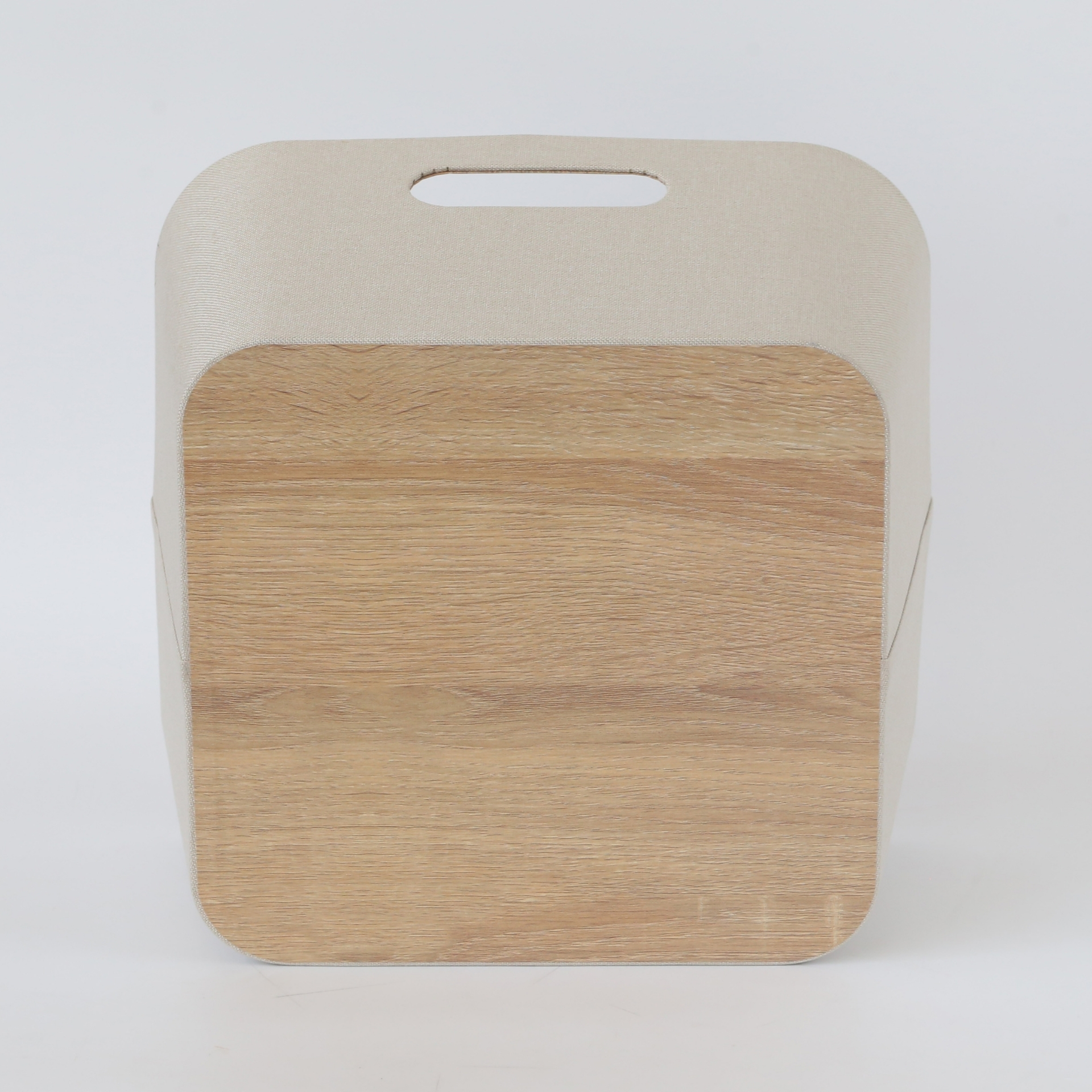 CAJA PLEGABLE FORRADA EN LINO MANIJA DE MADERA (L)