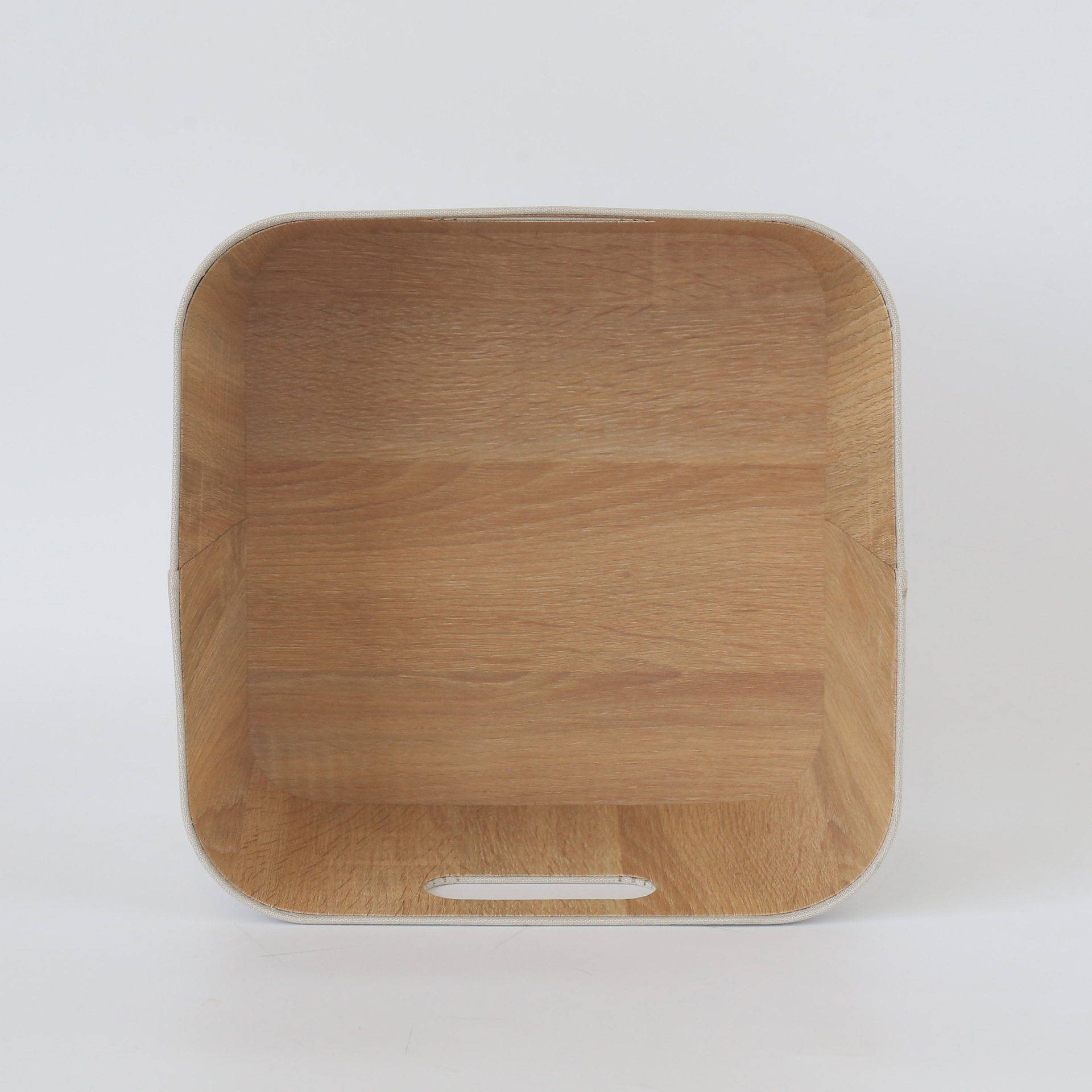 CAJA PLEGABLE FORRADA EN LINO MANIJA DE MADERA (S)